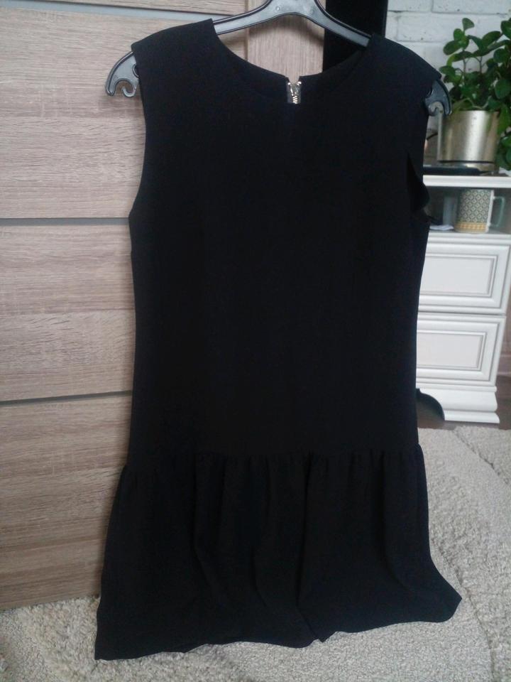 Лаконичное черное платье-трапеция с воланомS