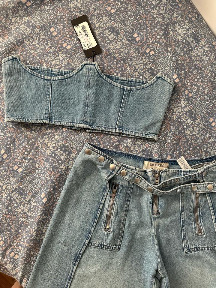 Баска новая, джинсовая, размер L Джинсы размер регулируется, за счет кнопочек По бокам открыто Артикул: 539434