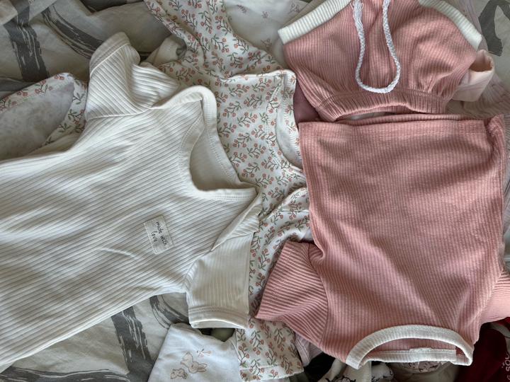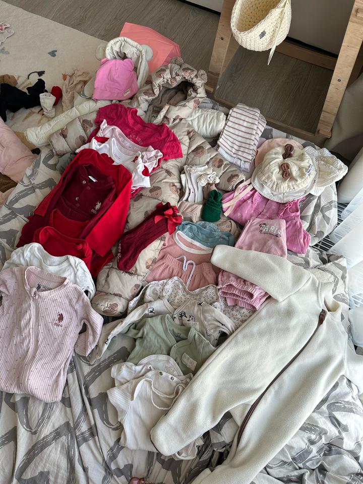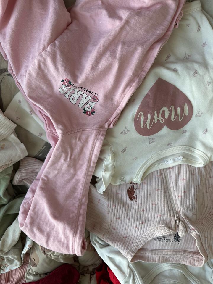 Все на девочку 6-9 мес : Комбенишон белый флисовый 6 Боди короткий рукав 6 боди длинный рукав 4 летние шапочки 3 лосин Носочки 9 пар Костюм Поло розовый Костюм Поло красный (кофта + штаны) Шапочка осенняя розовая Слипы 2 шт Кофта на замке розовая Костюм шортик + футболка роз Зимние комбенизоны не входят!!!! 6-9 мес Артикул: 539435