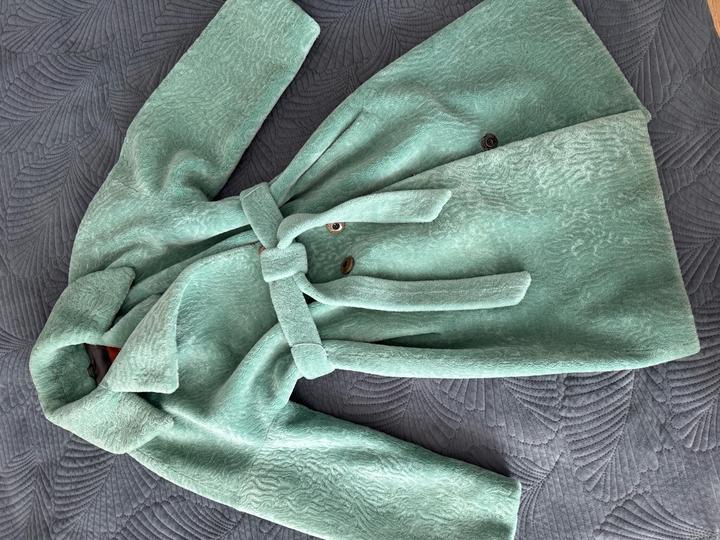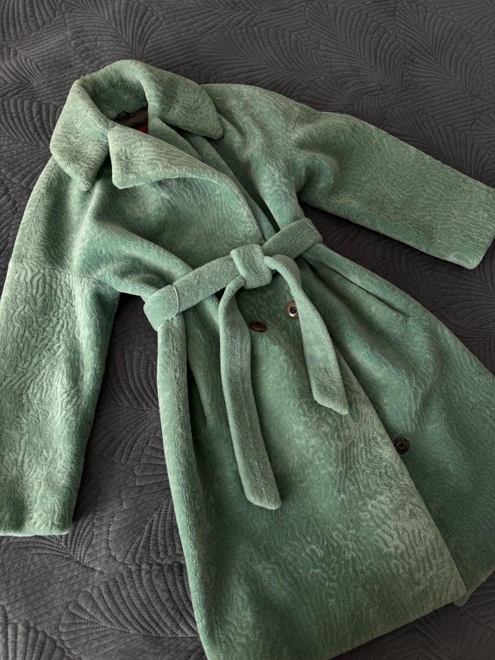 Шуба из искусственного меха в бирюзовом цвете Длина миди С поясом Артикул: 539547
