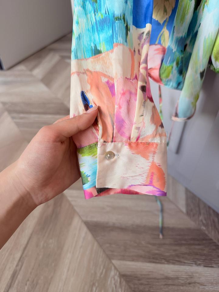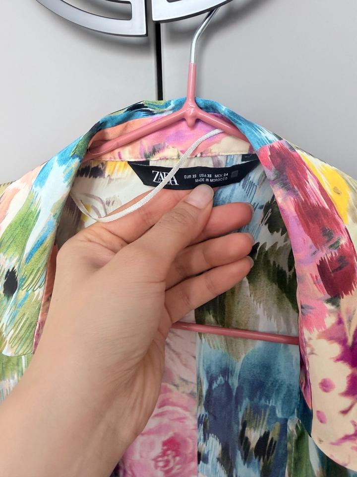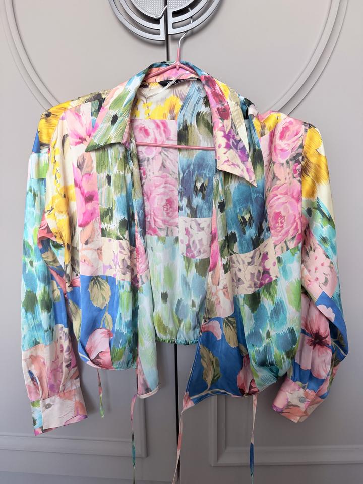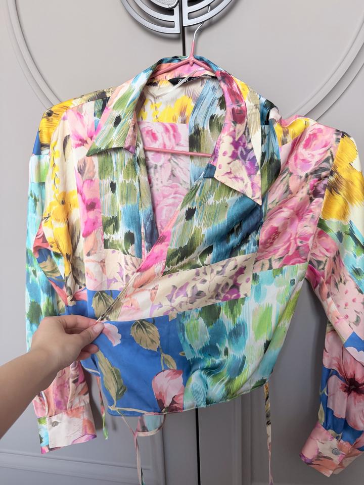 Разноцветная блузка зара на завязках (изнутри можно топ одеть или так носить) •Размер XS •Цвета насыщенные так как блузка почти как новая носилась пару раз •Сзади резиночка •На рукавах пуговицы На лето самое то Девочкам подросткам вообще супер будет Артикул: 539562