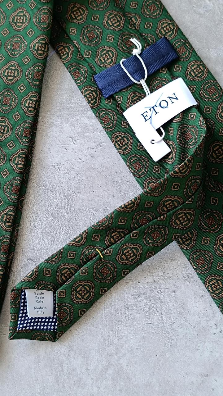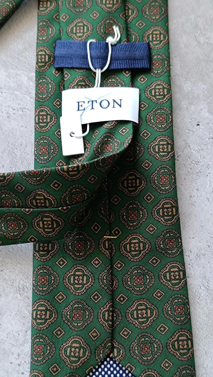 Eton , классический зеленый галстук с геометрическим узором. 100% шёлк. Сделано в Италии. Новый, без этикетки. Артикул: 539587