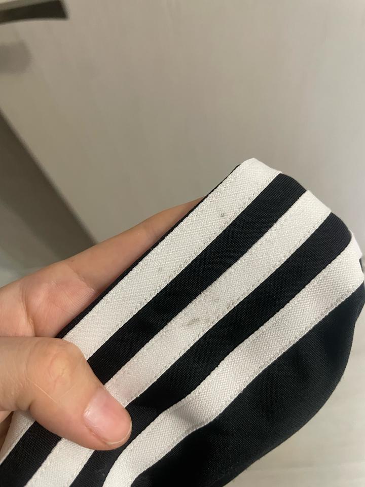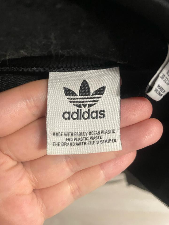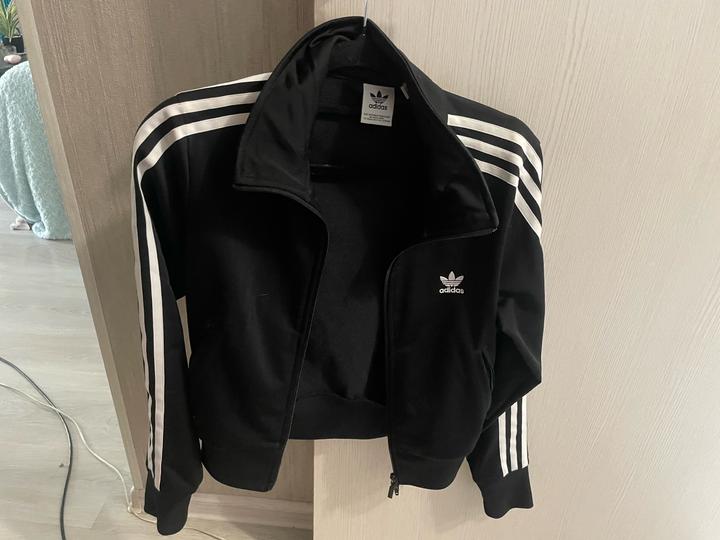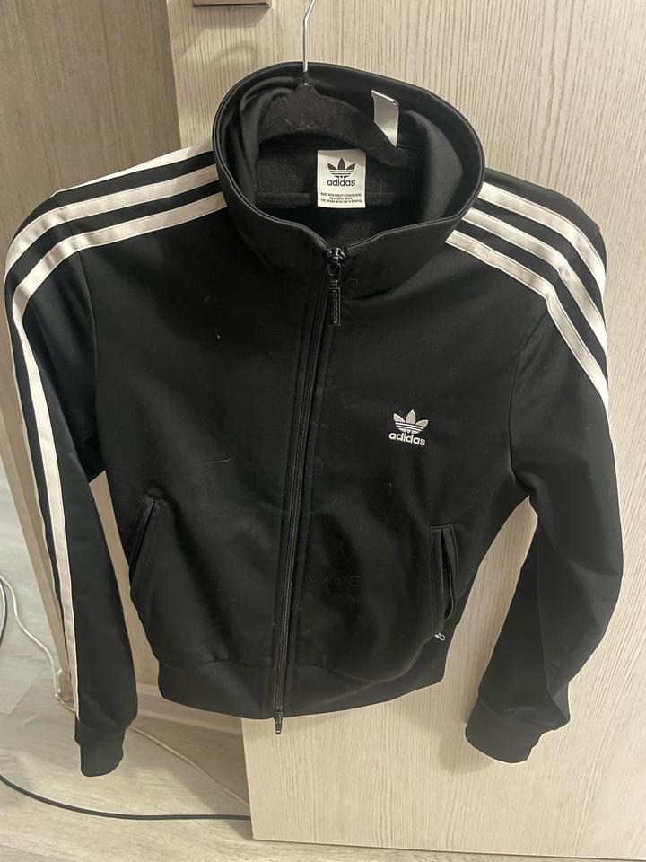 Черная олимпийка adidas, оригинал, есть небольшое пятно на полосах (см. на фото), хорошее состояние Артикул: 539634