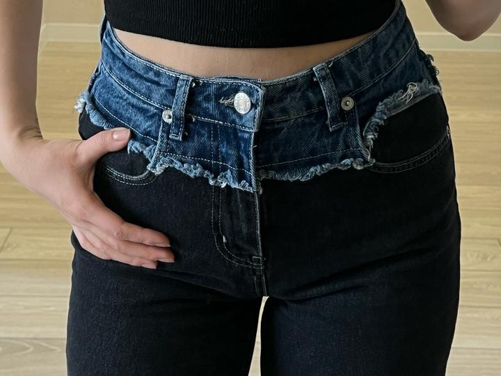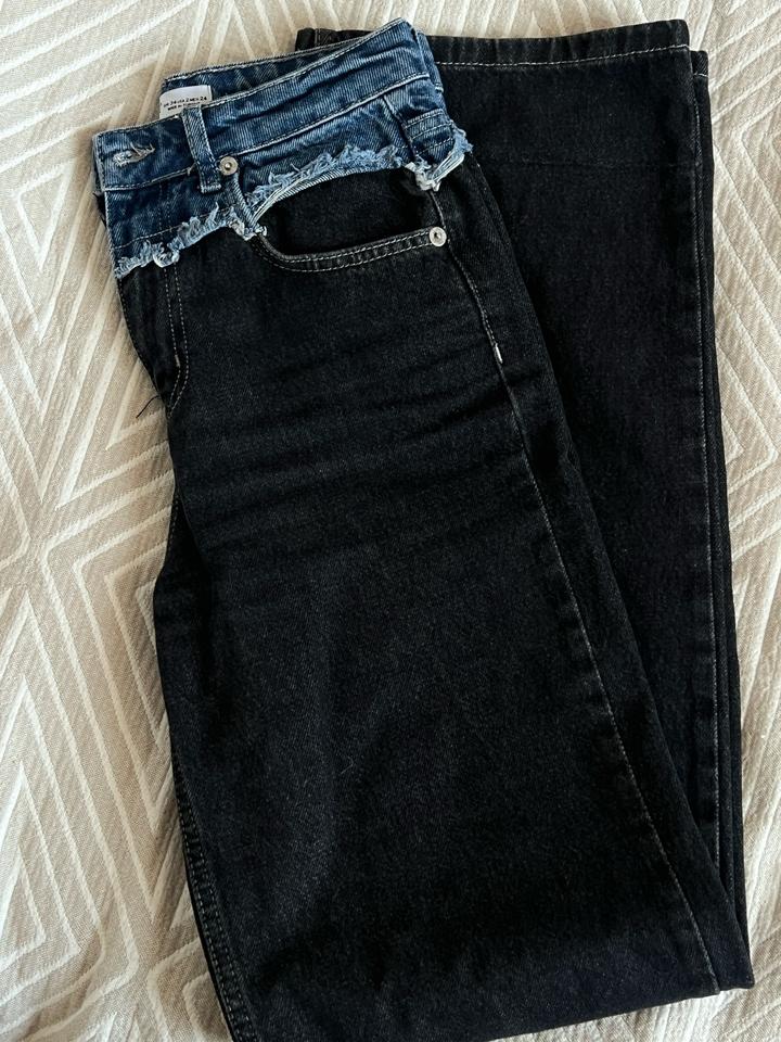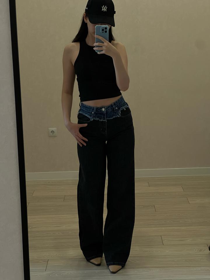 Черные джинсы с интересной ставкой в отличном состоянии. Мой рост 167, мне длинноват. Артикул: 539655