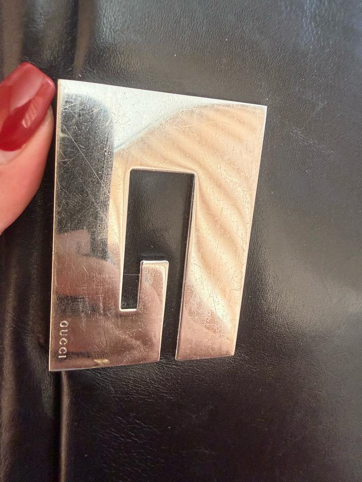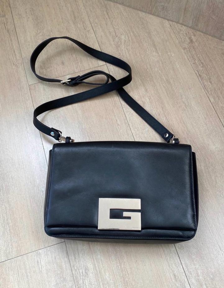 Gucci Vintage Tom Ford Big G shoulder bag Оригинал, made in Italy. Стильная культовая модель эпохи Tom Ford — минимализм + акцентная металлическая пряжка с логотипом G. Очень эффектно смотрится. Натуральная кожа, компактная, но вместительная.Закрывается на магнит Внутри есть отделение на молнии Состояние учтено в цене: — есть следы носки на коже (потёртости, мягкие заломы) — внутри наружного кармана есть износ покрытия, облезшее покрытие-не видно при носке. Ремешок не родной, с другого сафьяна Артикул: 539666
