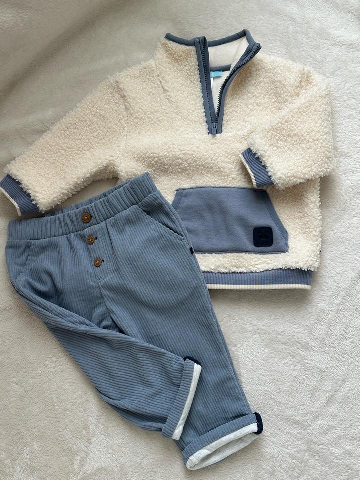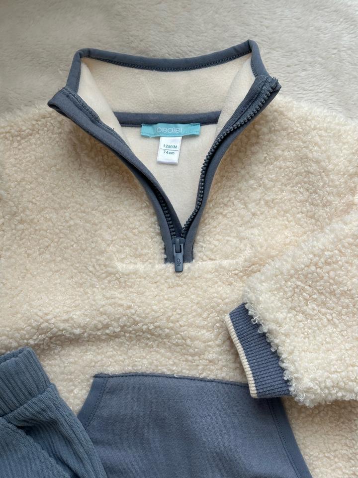 Детский костюм двойка Obaibi, теплая кофточка с мягким флисом внутри и штанишки с текстурной тканью. Состояние вещей новое, на штанишках этикетка. Подарили, но нам маленькое уже. На весну сейчас супер удобный комплект гулять. Артикул: 539671