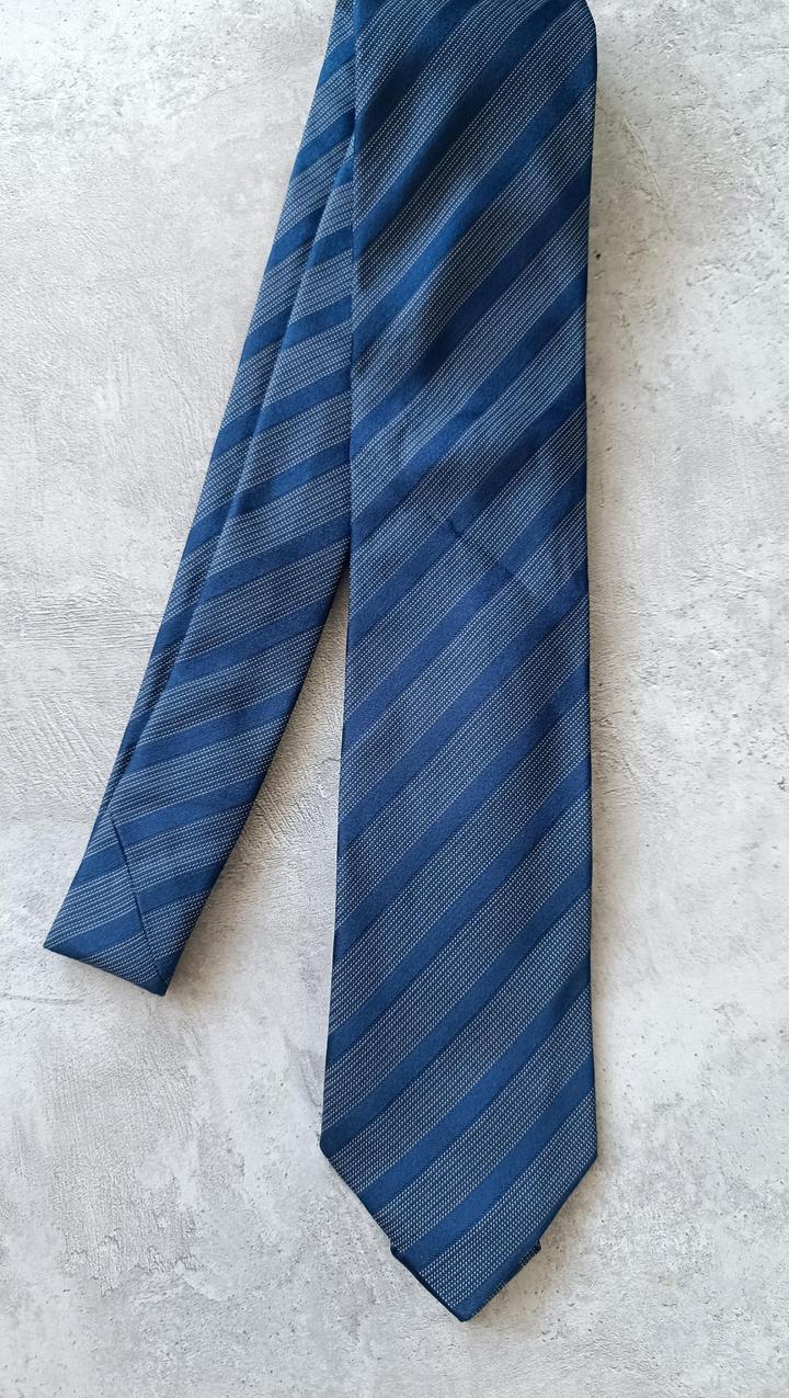 Галстук синий в полоску шелковый-