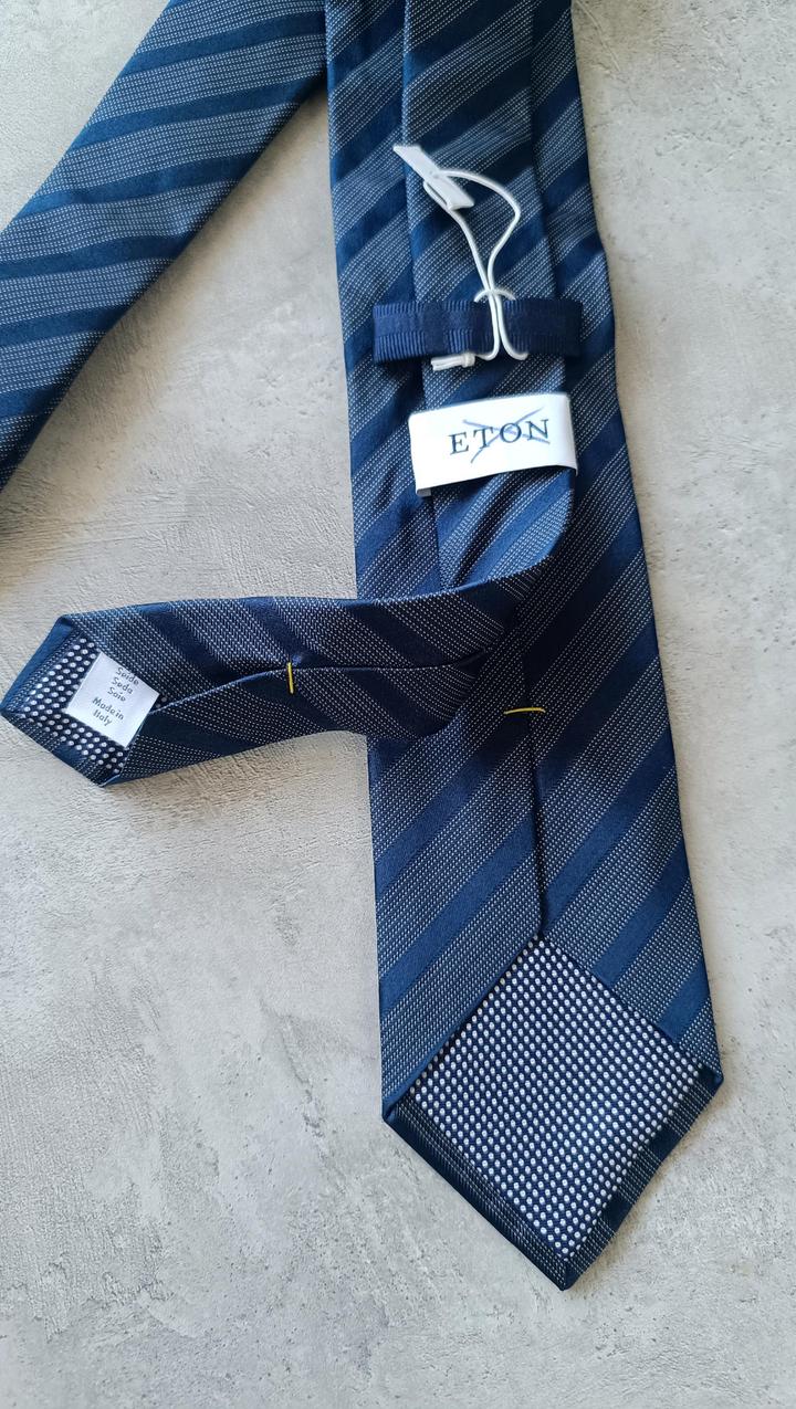 Eton , классический синий галстук в полоску. 100% шёлк. Сделано в Италии. Новый, без этикетки. Артикул: 539704
