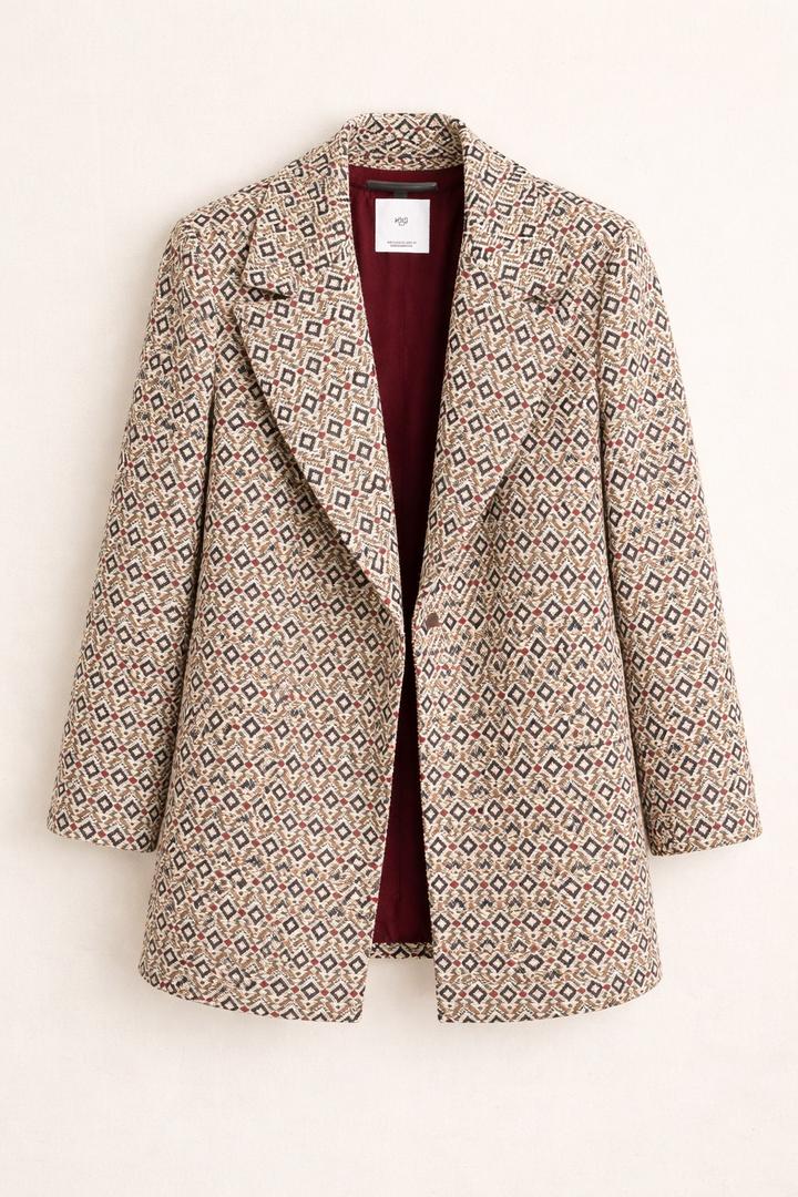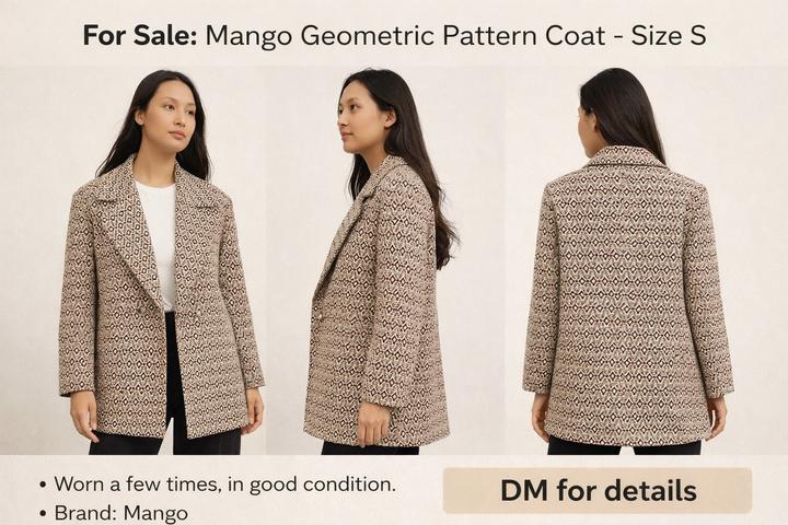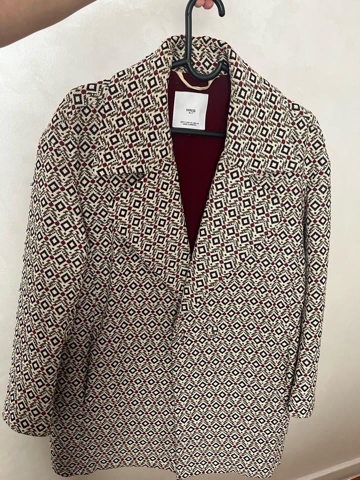 Стильное пальто от Mango Размер S. Актуальный геометрический принт легко впишется в любой гардероб и сочетается как с классикой, так и с повседневными образами. Надевала всего несколько раз, состояние хорошее. Ткань плотная, держит форму, выглядит дорого. Идеально подойдёт на весну/осень. Артикул: 539705