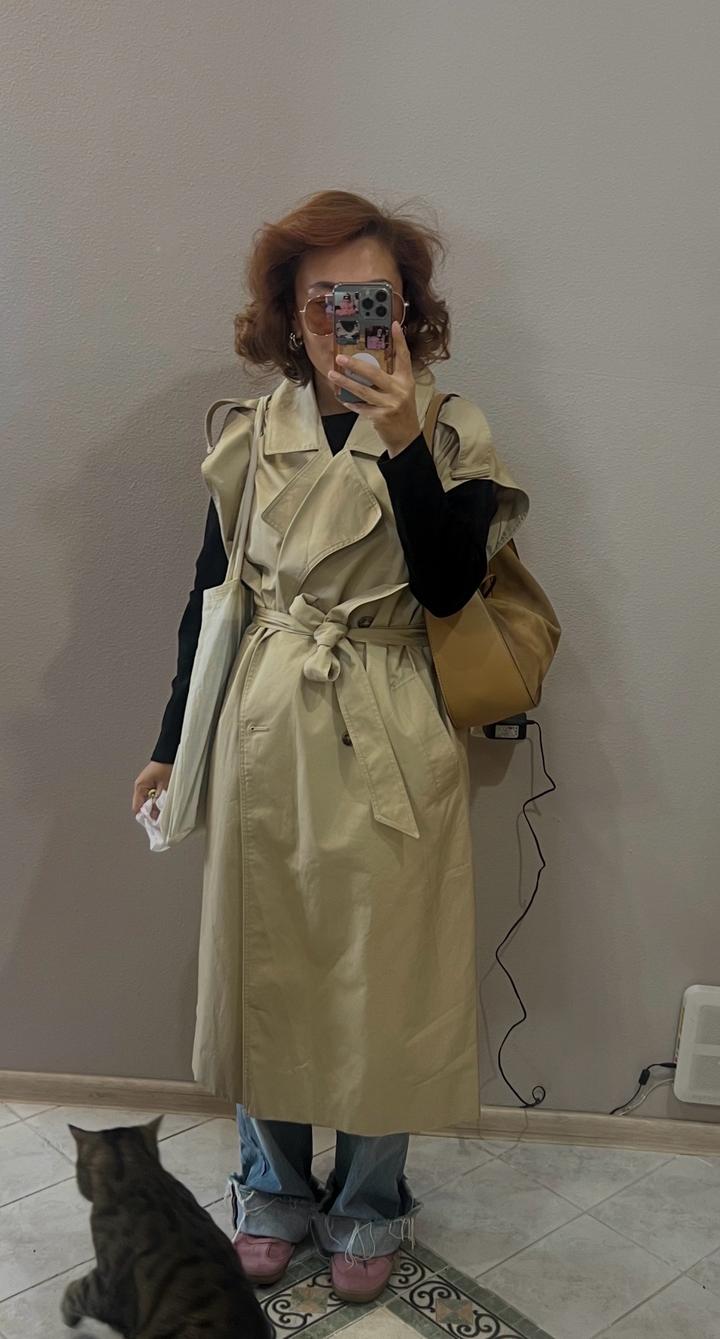 Тренч без рукавов H&M, заказывала с Германии, очень стильный, спасал в непонятную погоду. Размер С, но большемерит, и все-таки хорошо смотрится на росте выше 160 см. Тренч очень сильный, без дефектов Артикул: 539713