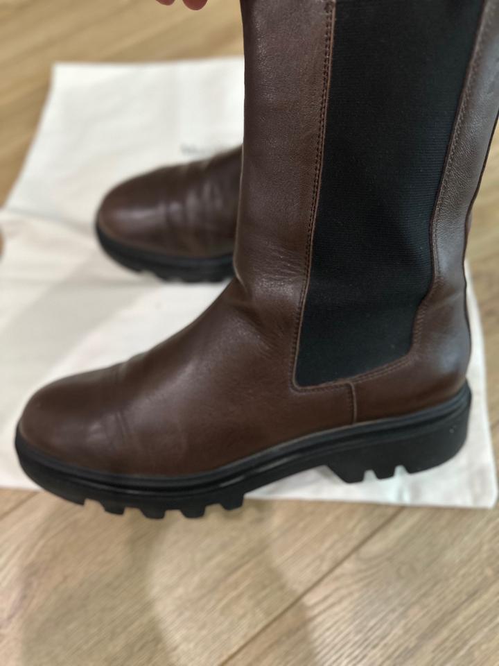 В хорошем состоянии сапожки. Чистые. Нат кожа. Размер 39. На носике есть нюансы, в носке не видно. Оригинал. Артикул: 539739