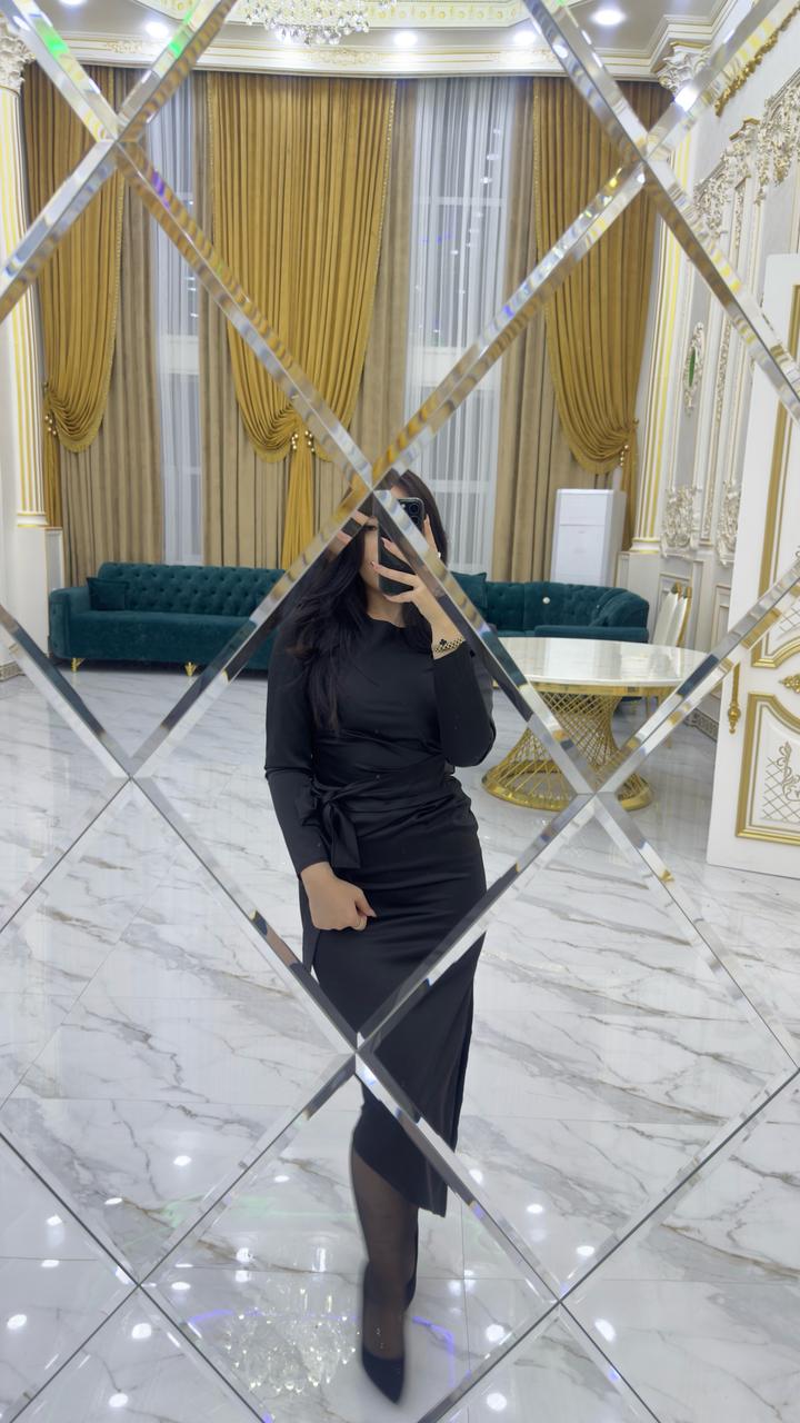 Купила за 12тыс. Носила 1 раз. Материал хороший, идеально подчеркивает фигуру. Отрез есть с одной стороны. И модель такая одна сторона длинее другой. Пояс есть который подчеркивает талию. Размер S/M. У меня размер 46, и некорректная фигура, вверх маленький а низ большая(ляжки большие). Мне идеально подошли. Артикул: 539746