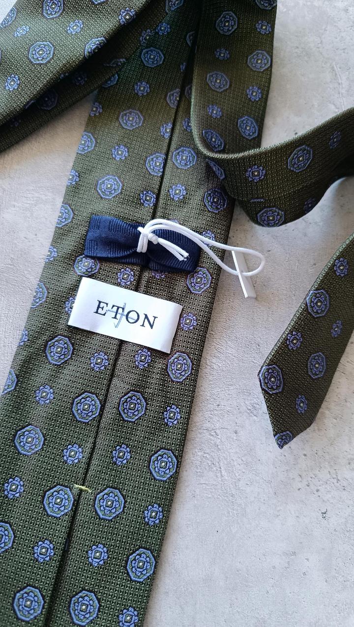 Eton , классический тёмно зелёный галстук с геометрическим узором. 100% шёлк. Сделано в Италии. Новый, без этикетки. Артикул: 539765