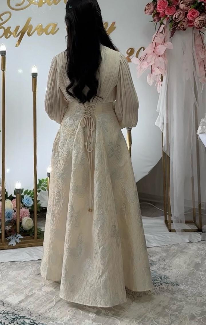 Платье в корейском стиле 🤍 Нежное, очень женственное платье, идеально подойдёт на “Сырға салу” или другой особенный день ✨ Смотрится дорого и аккуратно, подчёркивает талию. ✔ Надевалось всего 1 раз ✔ Состояние отличное ✔ Лёгкая, приятная ткань Очень красивое вживую 😍 Пишите в личку Артикул: 539779