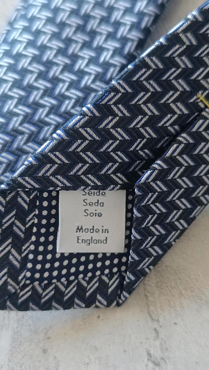 Eton , классический синий, фиолетовый галстук с геометрическим рисунком в ёлочку. 100% шёлк. Сделано в Англии. Новый, без этикетки. Артикул: 539781