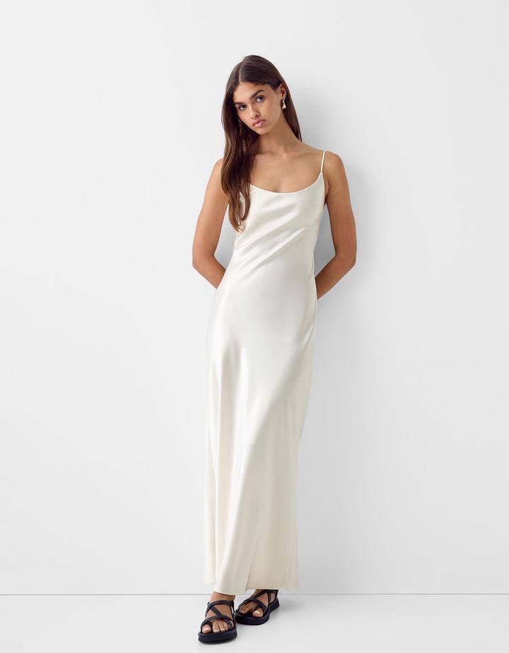 Белое платье комбинация сатиновое макси длины на регулируемых бретелях,мой рост 170 см талия 58см Артикул: 539815