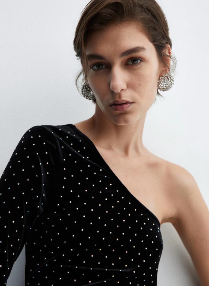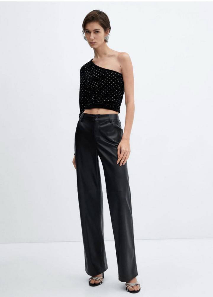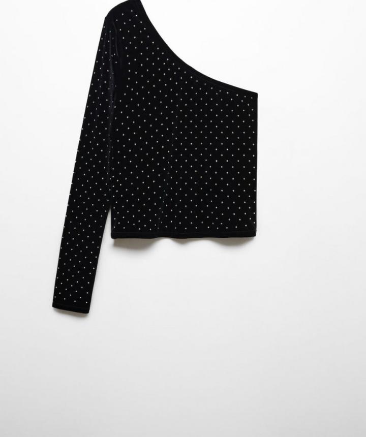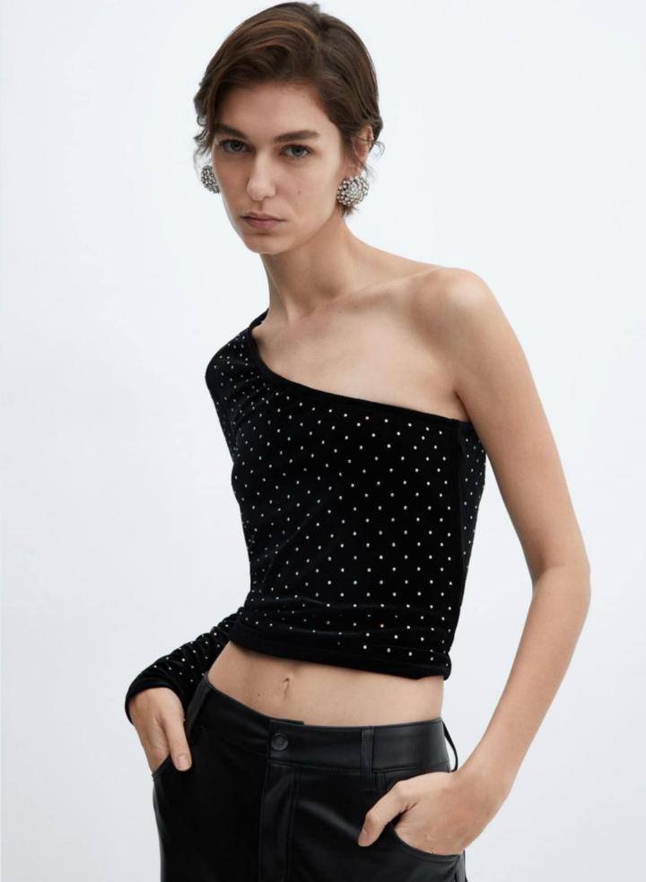 Продам новый черный топ Mango со стразами, размер 42-44. Этикетка есть. Материал велюр Артикул: 539921