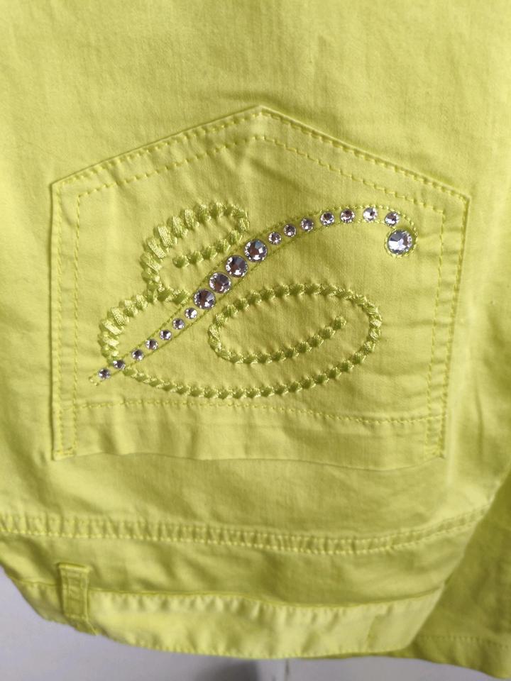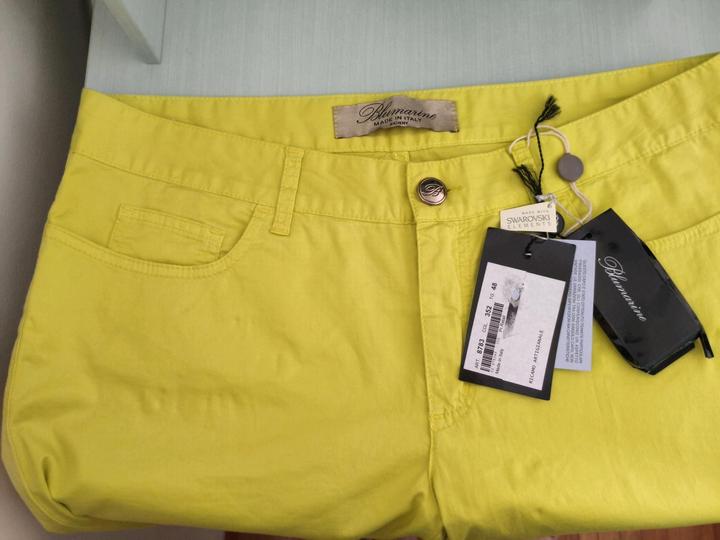 Очень красивые летние джинсы итальянского бренда Blumarine,заказаны из Европы,хлопок +эластан,эффектного салатово-жёлтого цвета,логотип на кармане из кристаллов Сваровски,сделаны в Италии,маркирова на 48it,но маломерит точно на размер,на 48 российский,350€ Артикул: 539942