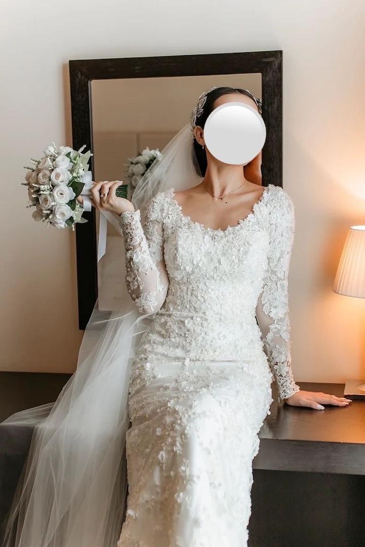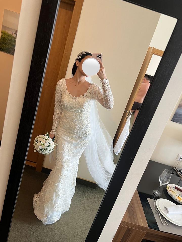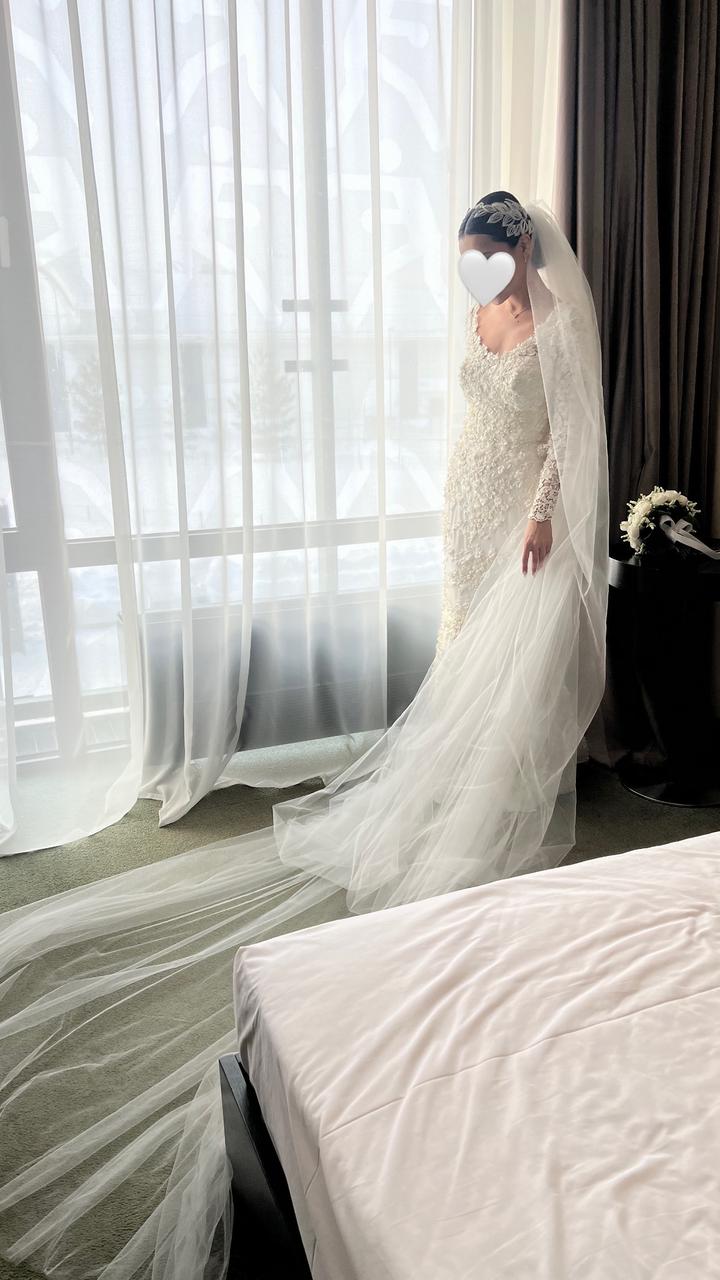 Дорогие будущие невесты🤍 Продаю своё свадебное платье -очень особенное и нежное. Платье сшито на заказ у Naiyl Baikuchkov, полностью ручная работа, поэтому дизайн действительно необычный Очень лёгкое, удобное и элегантное - в нём комфортно весь день. Хорошо подчеркивает талию. Шлейф снимается. Размер: S-M Мой рост :175 Артикул: 539982