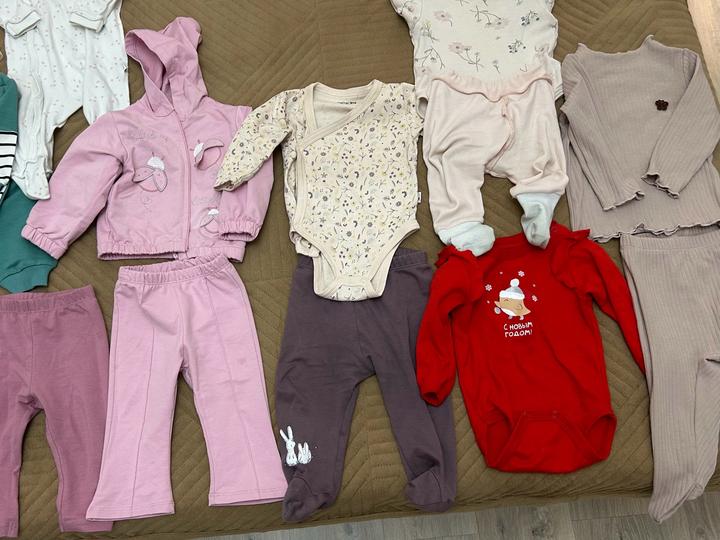 Вещи на девочку 3-6-9 месяцев. В хорошем состоянии. Некоторые костюмы новые с этикетками. Все что на фото за 25000 Артикул: 540008