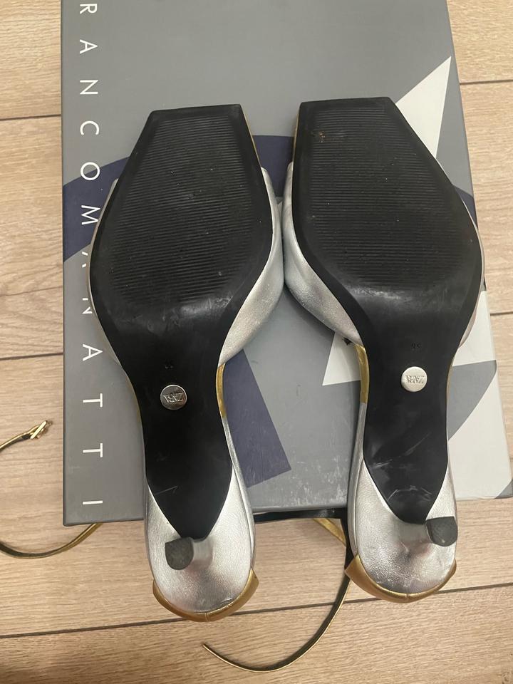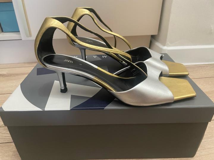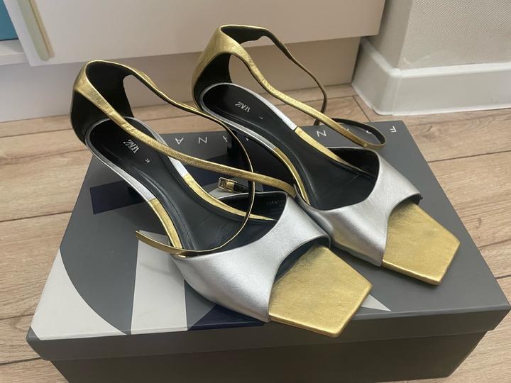 Босоножки Zara, цвет комбинированный серебро-золото, каблук kitten heels Артикул: 540027