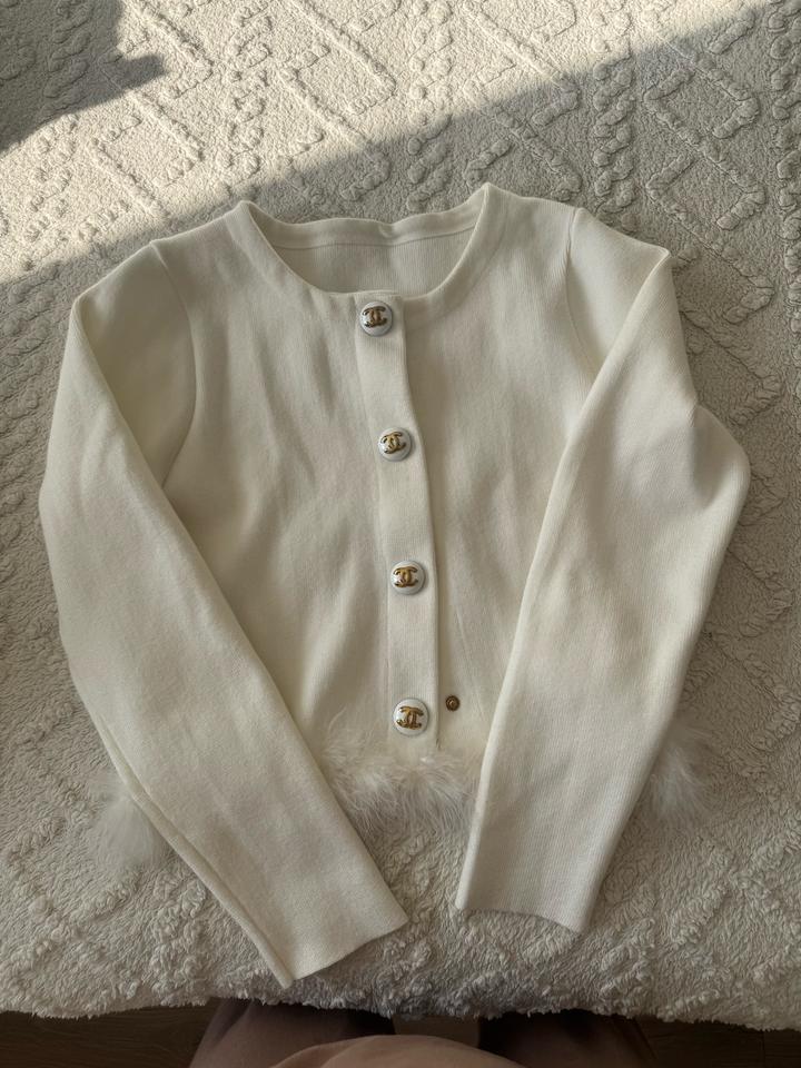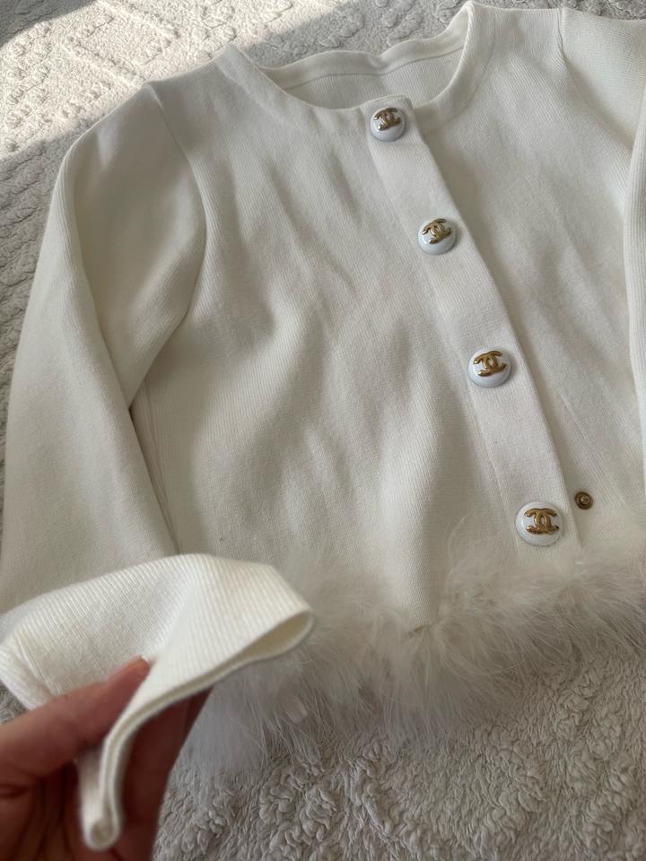 Белый кардиган с перьямиOne size