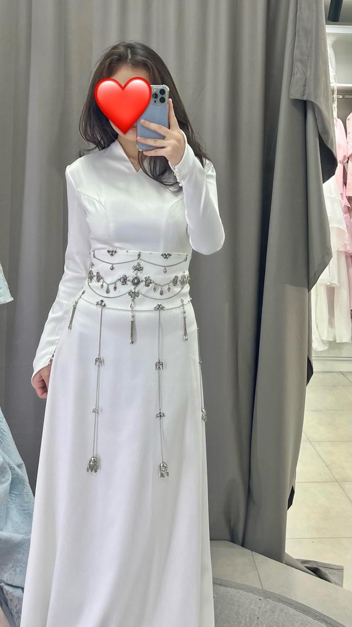 Продаю своё платье на Сырга Салу Очень красивый образ, сшит на заказ. Пояс - полностью ручная работа, все детали и фурнитуру подбирала и покупала сама. Платье не просвечивает, ткань очень приятная к телу. Размер XS / S Артикул: 540089
