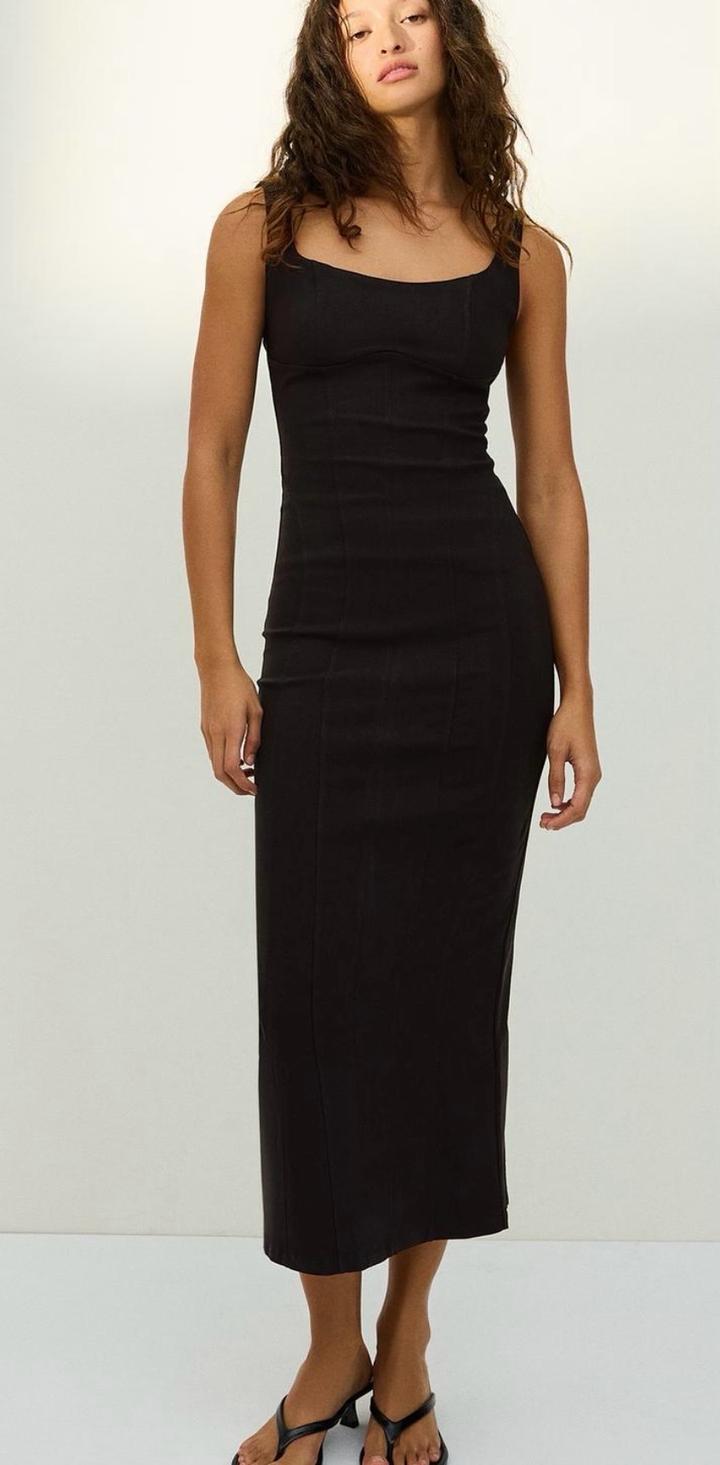 Черное миди платье из bershka на брительках. Артикул: 540096