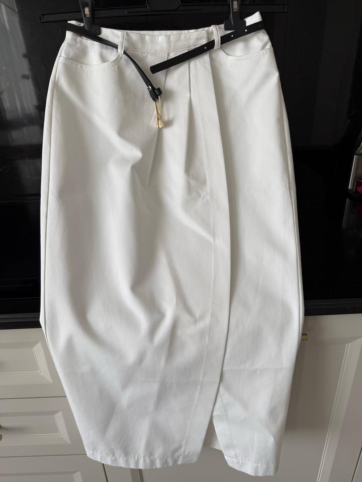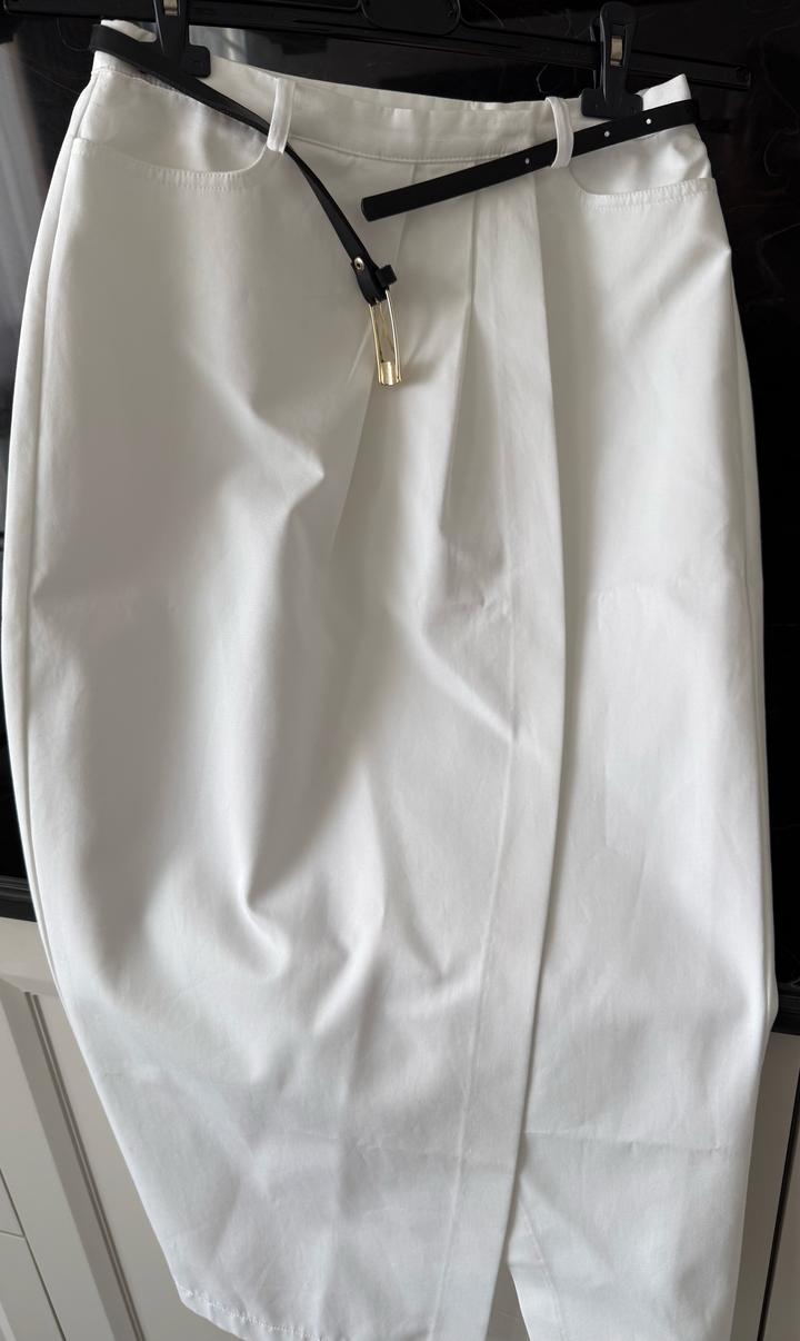 Белая юбка , на запах, длина миди, карманы спереди и сзади имитация, с ремешком Артикул: 540180