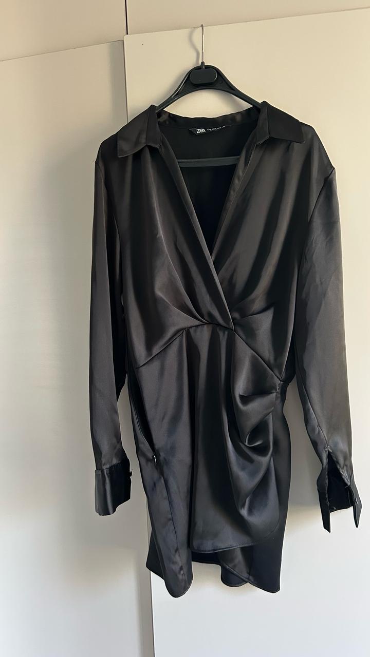 Черное атласное платье от Zara. Надела 1 раз, состояние идеальное. Размер М. Артикул: 540197
