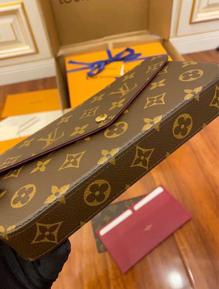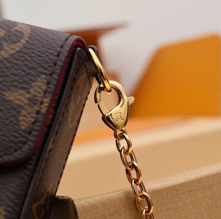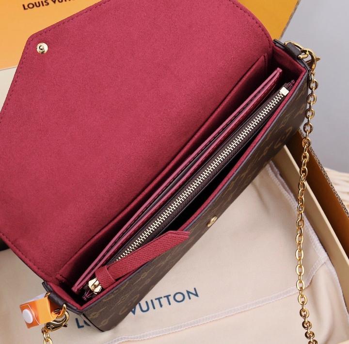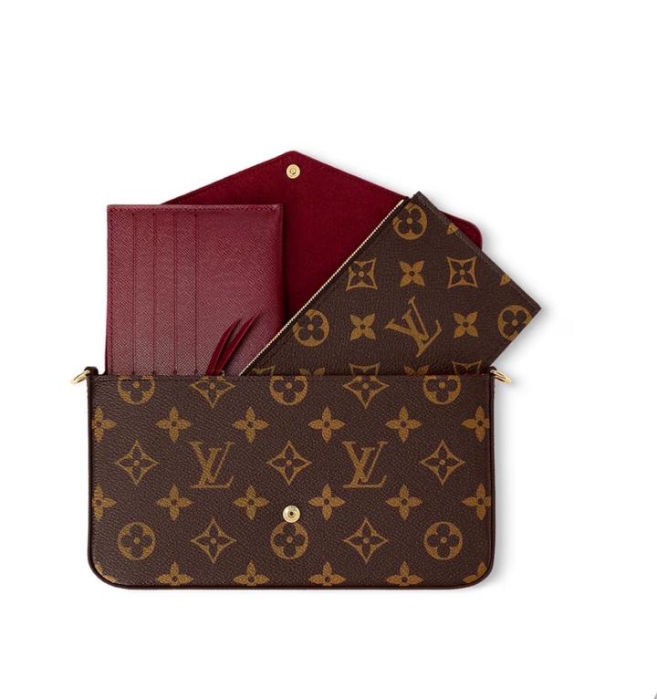 Клатч Felicie из канвы Monogram в премиальном качестве! Вместительная конструкция аксессуара предусматривает два съёмных кармана: один на молнии, а другой с практичными отделениями для банковских карт. Съёмная золотистая цепочка позволяет носить универсальную модель на плече или в стиле кросс-боди. Застёжка-кнопка завершает дизайн. 21 х 12 х 3 см (длина х высота х ширина ) Вощёная канва Monogram Отделка из вощёной канвы Monogram и яловой кожи Подкладка из микрофибры Артикул: 540313