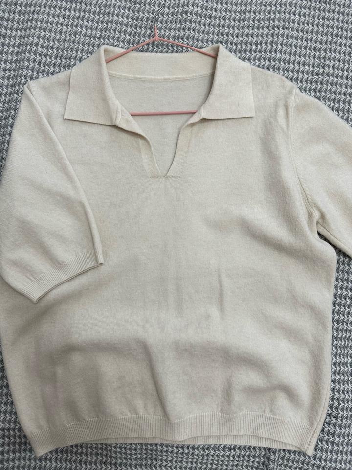 Молочного цвета, мягкий материал похожий на кашемир. Подойдет на 42-46 размеры. Сидит свободно. Не колится, в отличном состоянии. Носила пару раз на выход. Артикул: 540394