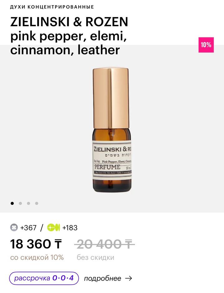 Духи б/у,оригинал Остаток больше половины Pink Pepper, Elemi, Cinnamon, Leather Zielinski & Rozen — это аромат для мужчин и женщин, он принадлежит к группе древесные пряные. Верхние ноты: Розовый перец и Черный перец; средние ноты: Корица и Элеми; базовые ноты: Кожа и Амбра. Артикул: 540405