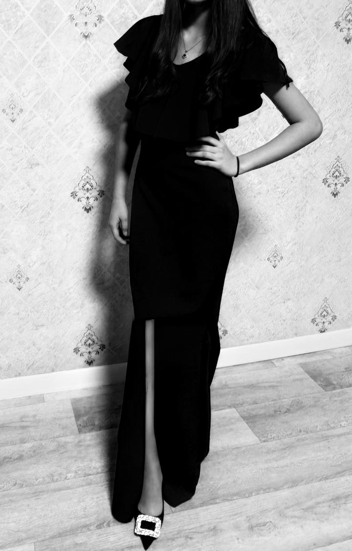 Продаю вечернее платье черного цвета. Состояние идеальное, надевалось всего один раз на мероприятие Фасон: Нереально красивый крой! Изящное декольте с рюшами и этот невероятный, разрез Цвет: черный Состояние: Идеальное (1 раз б/у). Размер:подходит на S/M Артикул: 540409