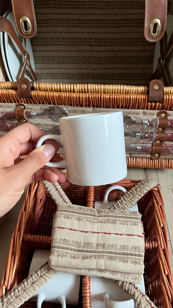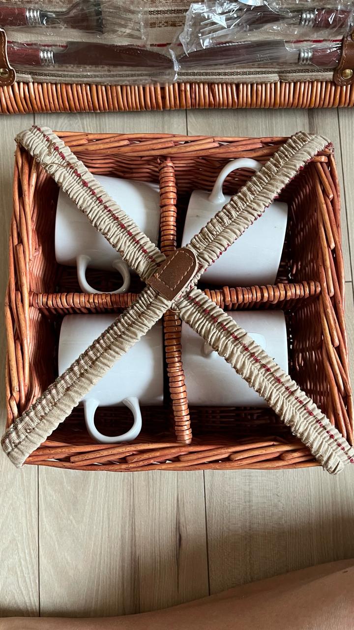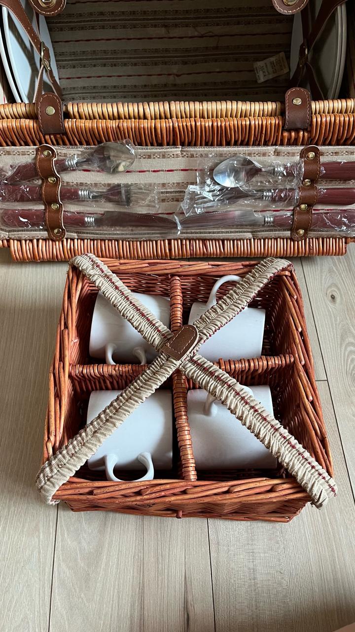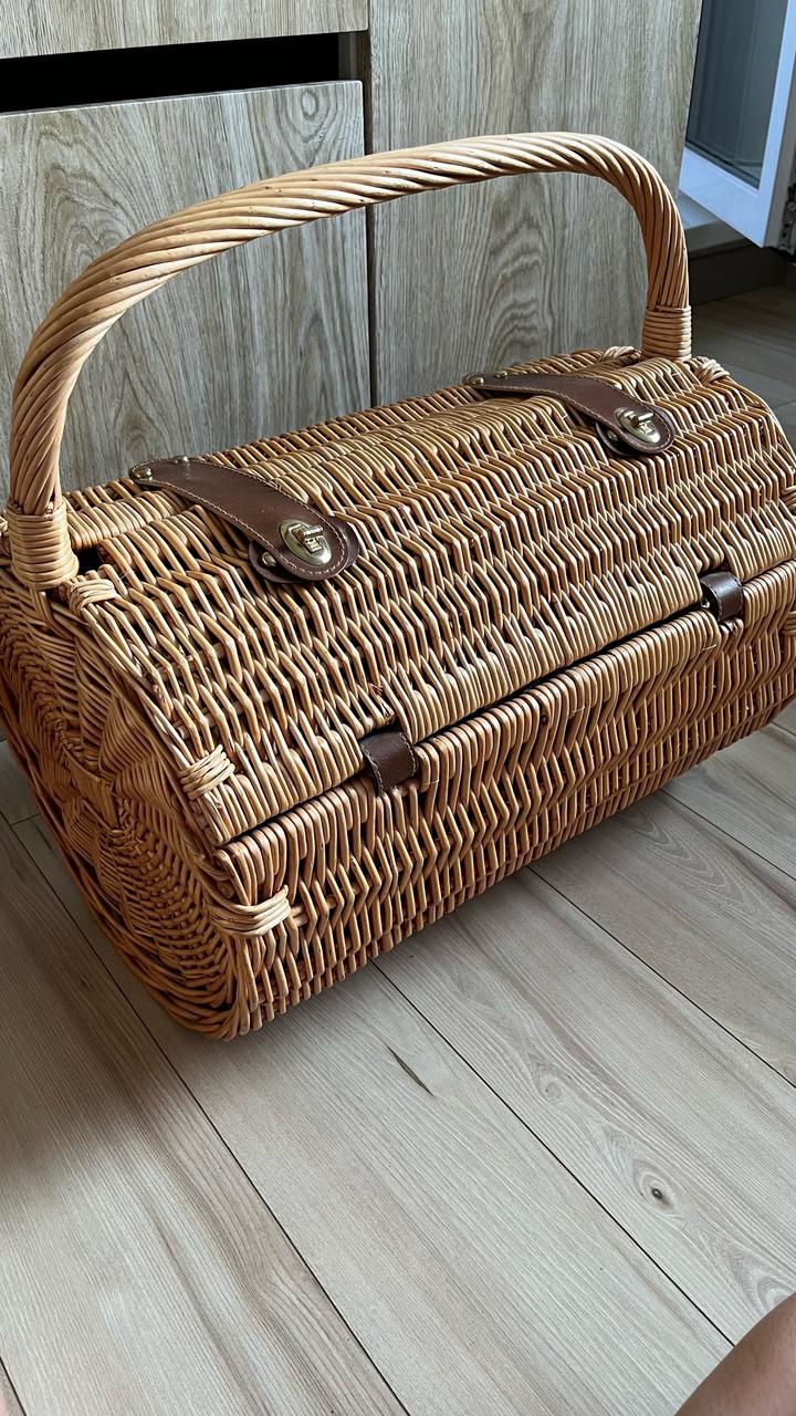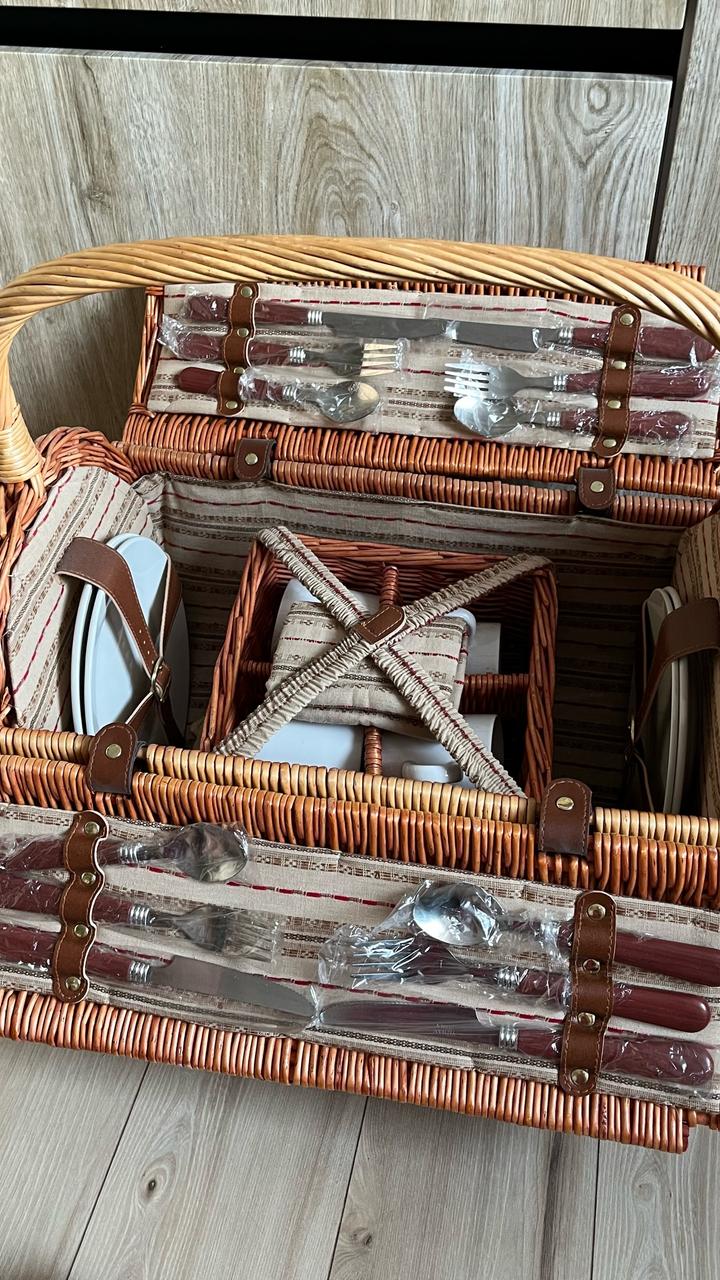 Продаю корзинку для пикника, полностью новая, настоящее плетение, комплект на 4 человек. Набор чашек, тарелок, ножи, вилки. Все на ремнях для удобства транспортировки. Есть свободное место под иное. Удобный размер, плетение качественное. Абсолютно новая. Идеально для подарка. Артикул: 540557