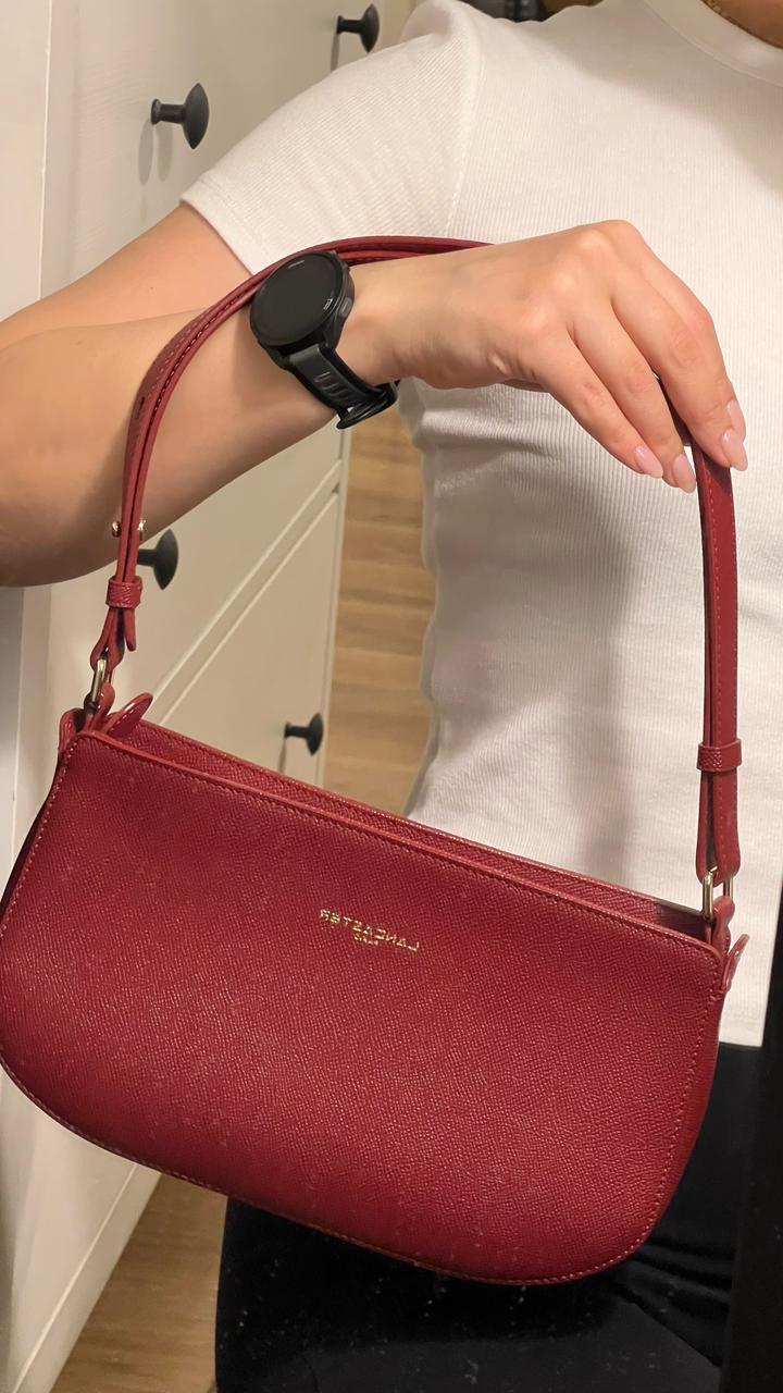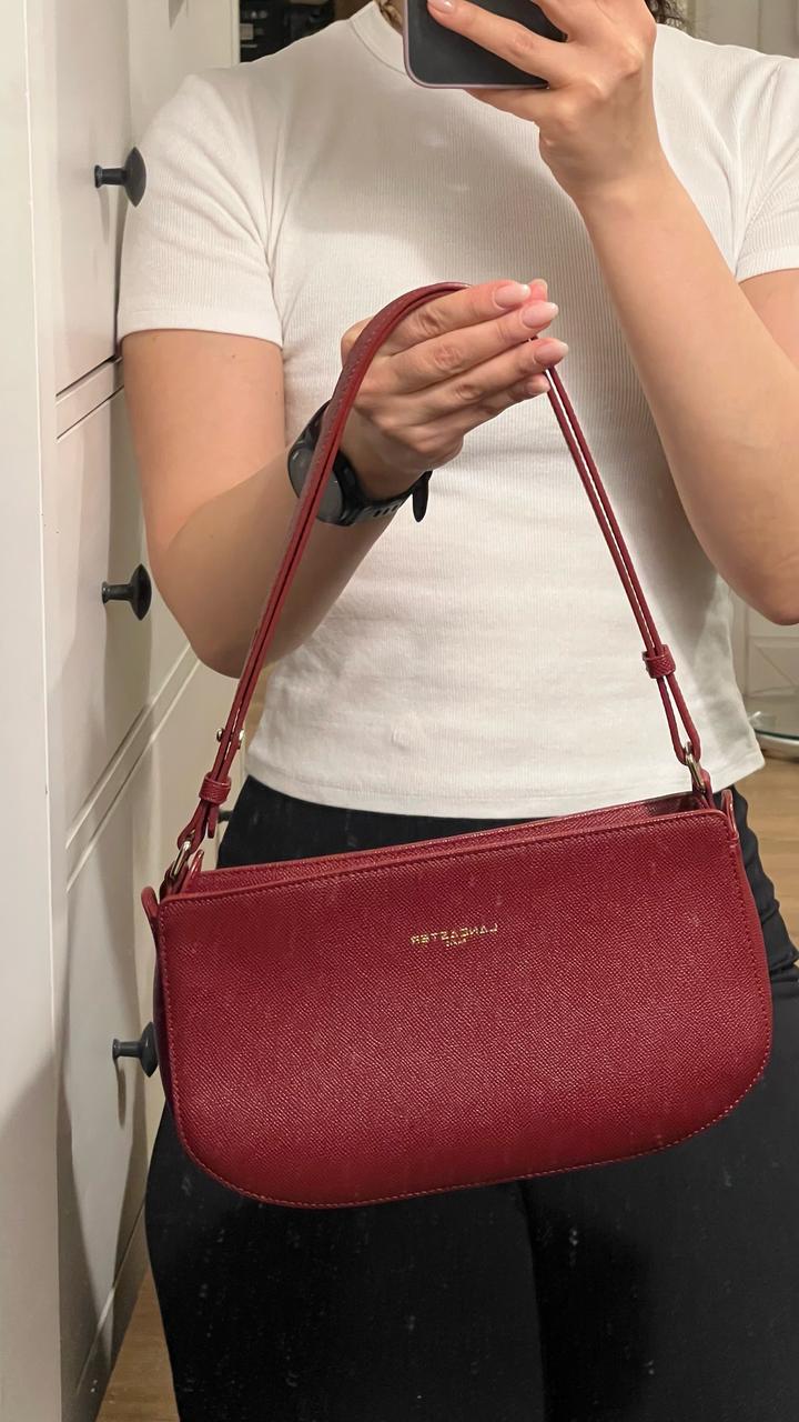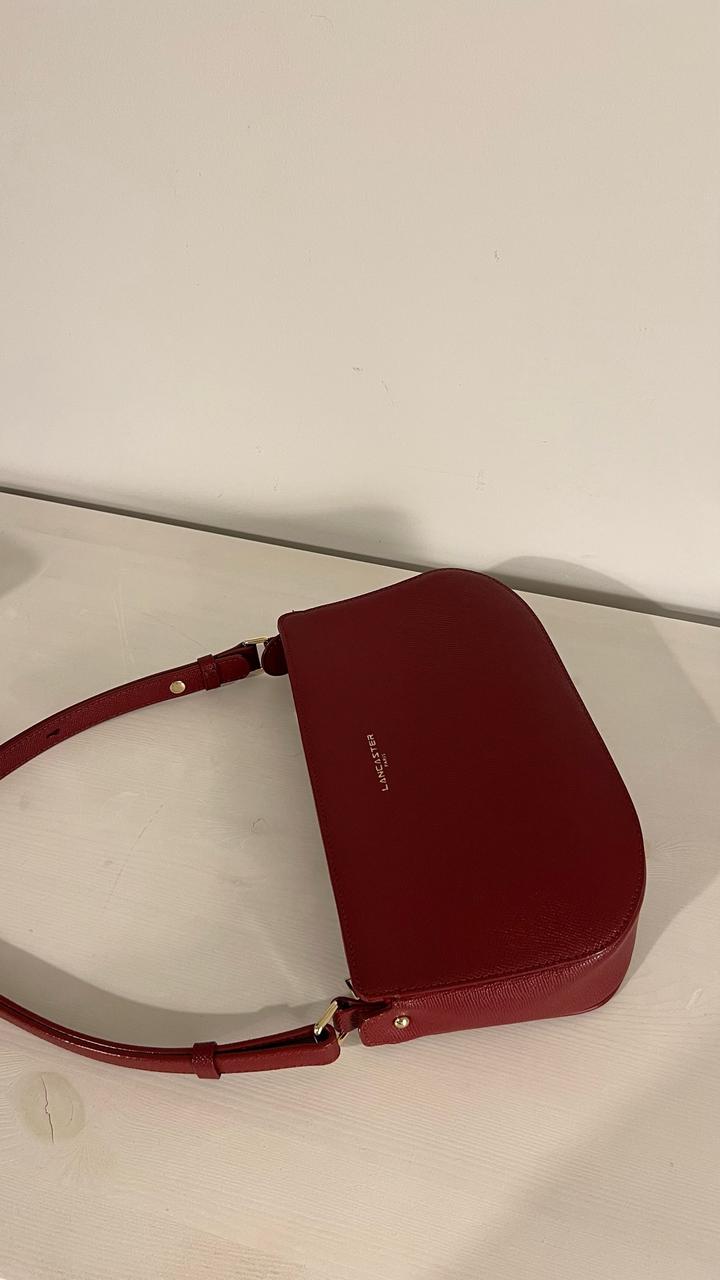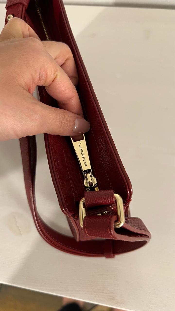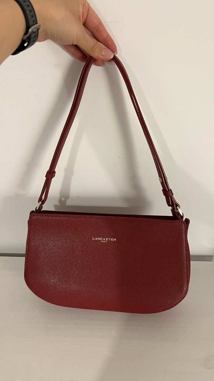 Кожаная сумка Lancaster. На вид небольшая, но достаточно вместительная. Внутри есть отделение с замочком. Это замок разошелся. Остальные замки рабочие. Цвет глубокий темный красный. Очень красивый цвет. Артикул: 540608