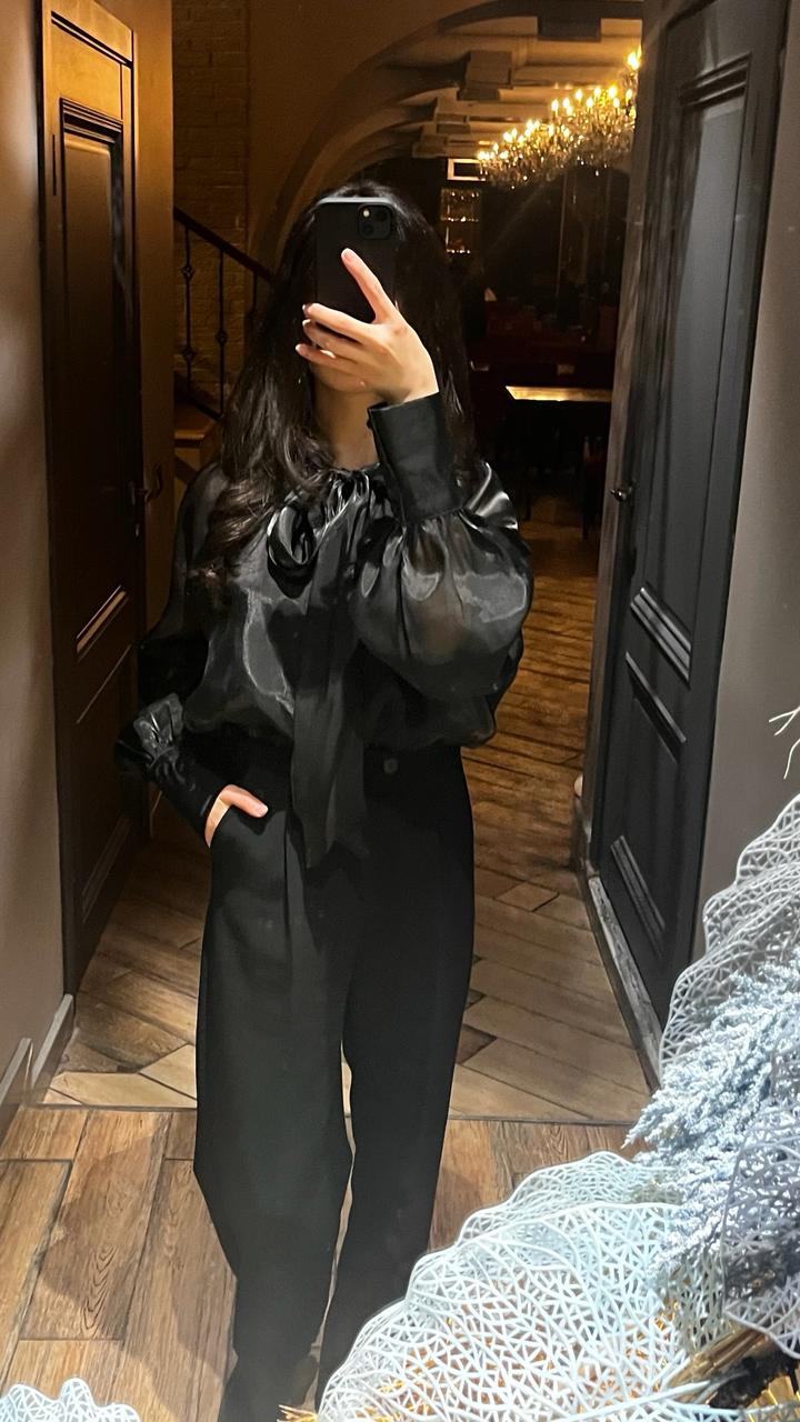 Черная блузка. Просвечивают область рук. Силуэт закрыт. Есть подклад свой✅ Носила лишь 1 раз. Длина средняя. Лучше в заправленном носить. Рост 1.60. Никакого запаха и тд. Могу вживую показать по видеозвонку и примерить Артикул: 540619