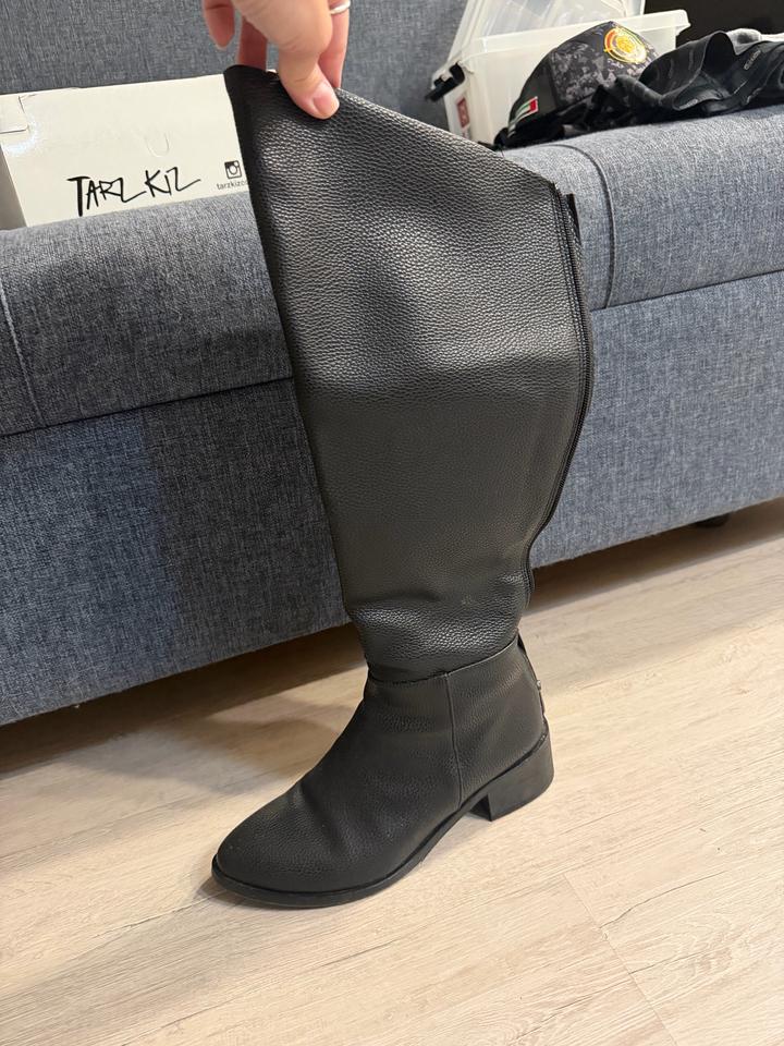 Турецкие зимние женские сапоги-ботфорты, матовые, 39 р, из кожзама с флисовой подкладкой. Замок сзади. Одевались 2 раза, состояние новых Артикул: 540660
