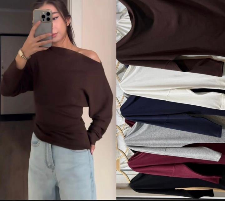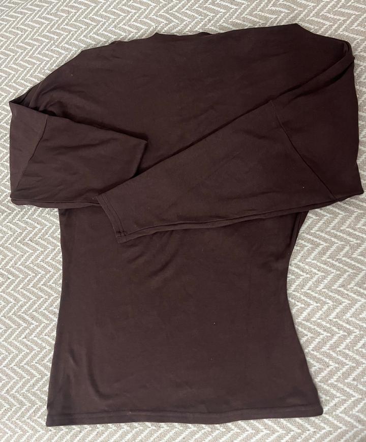 Коричневый лонгслив с открытыми плечамиOne size