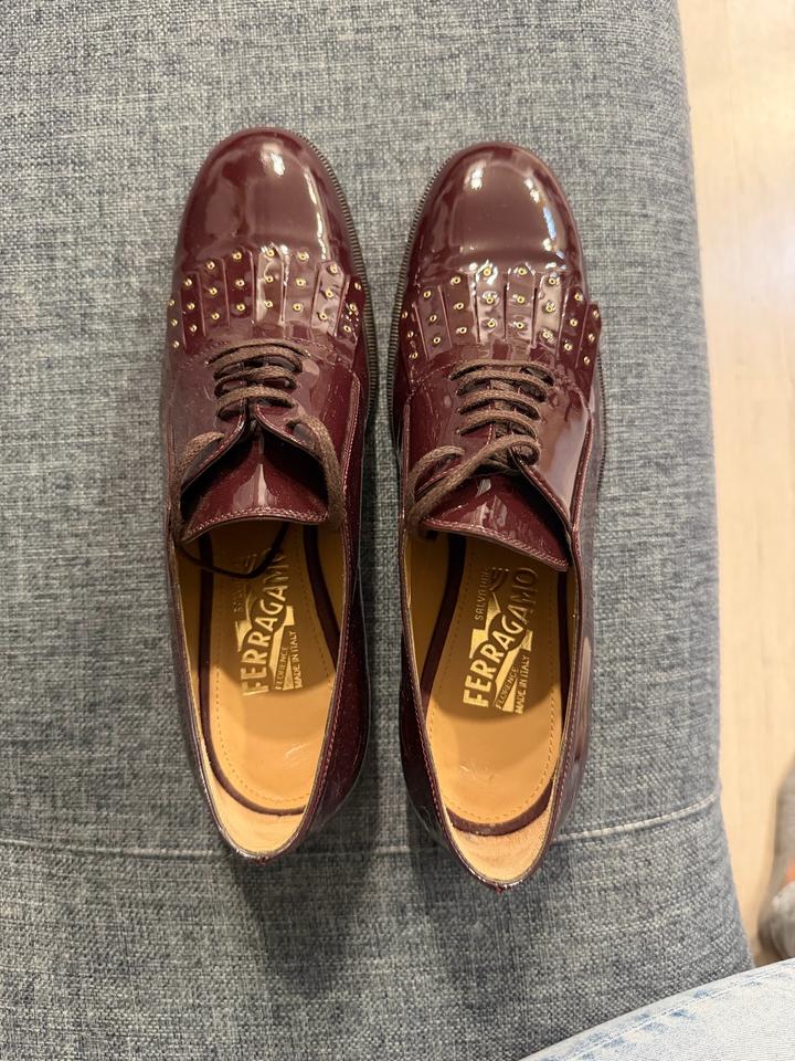 Лакированные бордовые туфли Salvatore Ferragamo, 38р, в идеальном состоянии (одела 1-2 раза на примерку), на узкую ногу, без коробки Артикул: 540695