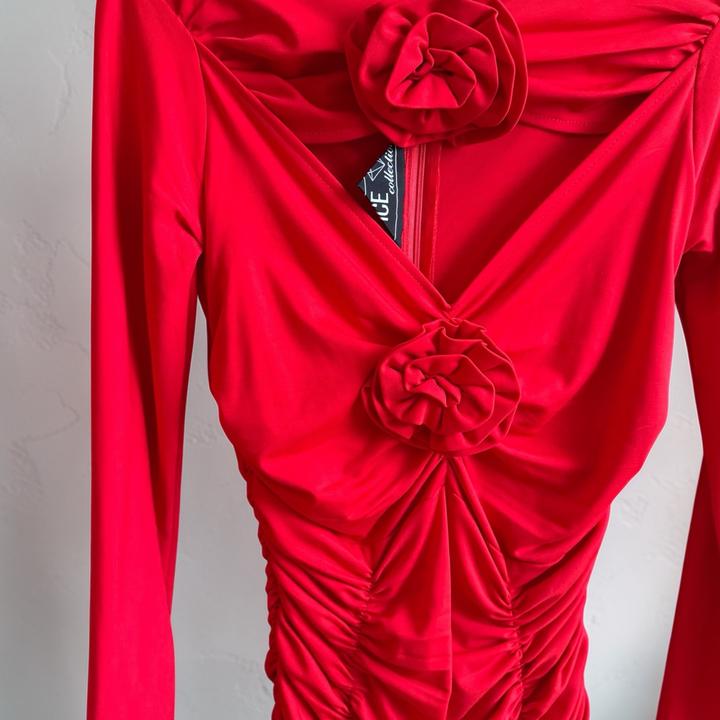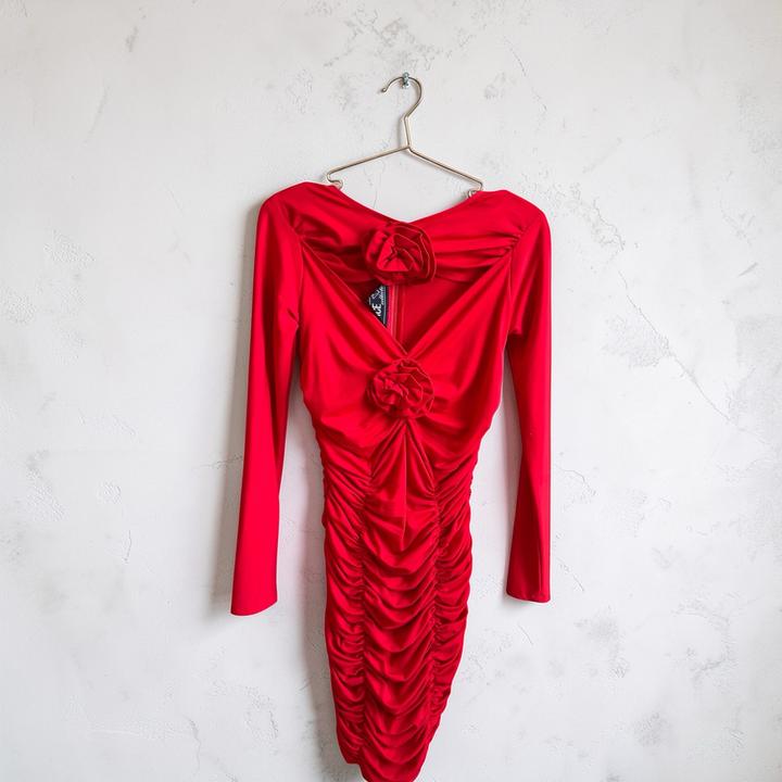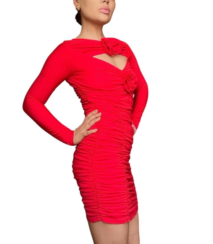 Про смелость быть яркой, но при этом оставаться собой..! Облегает, подчёркивает, собирает всё в нужных местах.Драпировка работает здесь лучше любого фильтра,делает силуэт аккуратнее и стройнее. Детали в виде цветов добавляют характер, но не перегружают образ. Надето один раз, состояние идеальное. Артикул: 540798