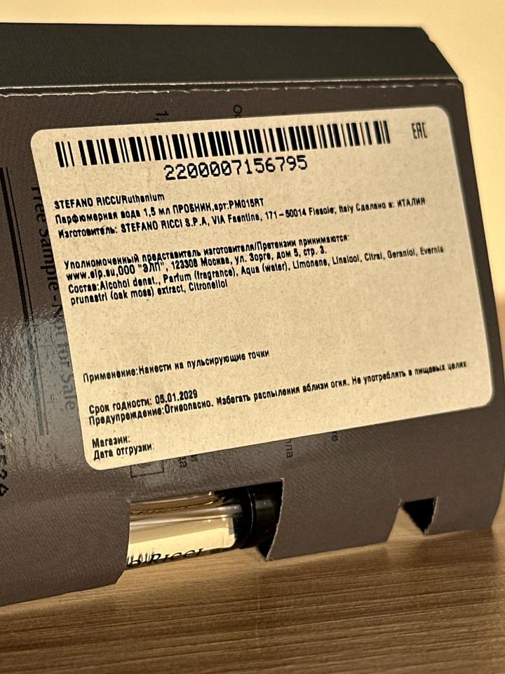 Продаю оригинальный пробник аромата STEFANO RICCI Ruthenium (1.5 мл) В моем профиле можете ознакомиться с другими ароматами доступными на распив. Сайт - www.parfman.kz Артикул: 540802