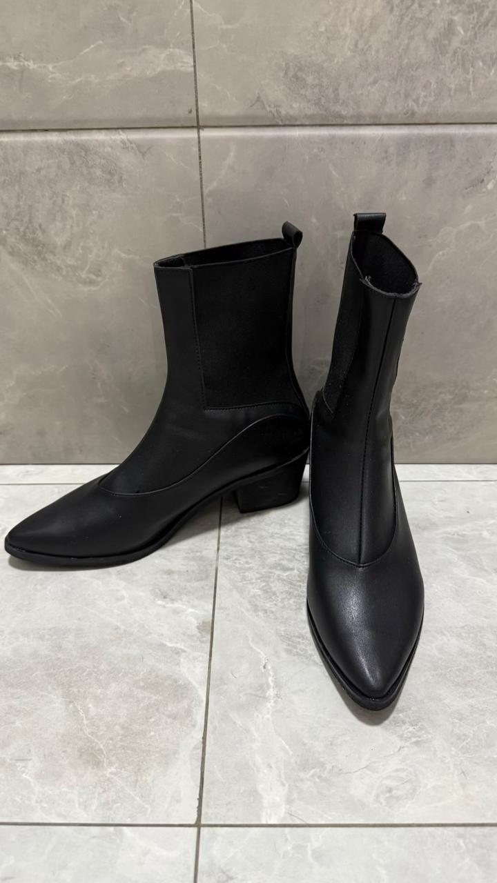Классические ботильоны 🖤 ▪️ Размер: 39 ▪️ Материал: эко-кожа ▪️ Состояние: отличное ▪️ Устойчивый каблук — удобно на каждый день ▪️ Острый нос, минималистичный дизайн Базовая модель, которая подойдёт под любые образы — от повседневных до более строгих 🔥 Артикул: 540805