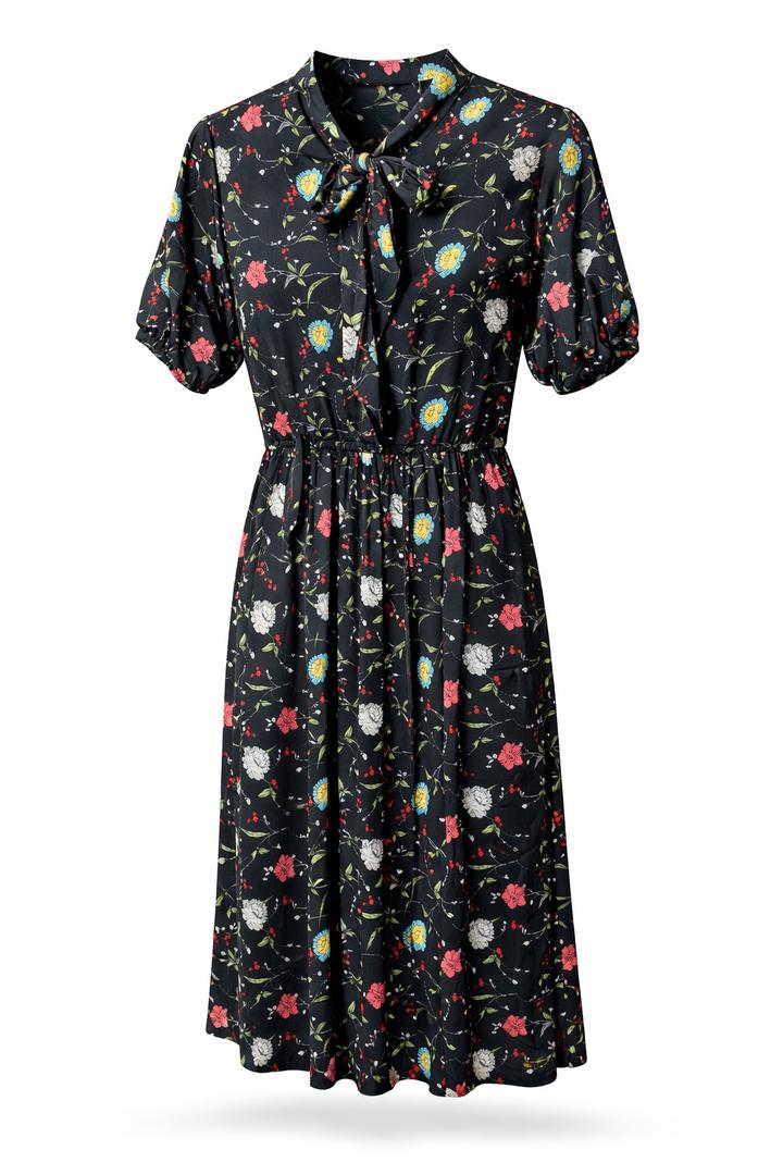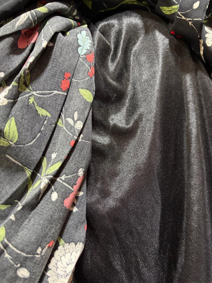 Платье черного цвета с цветочным принтом Лента, которую можно повязать на свое усмотрение, эластичная талия Состояние отличное Артикул: 540831