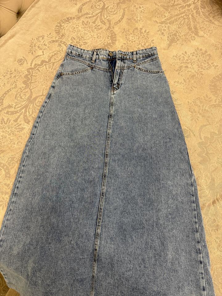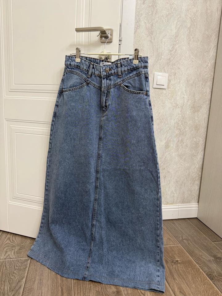 Юбка джинсовая, макси длина. На рост до 160-165. Длина 95. Размер М , возможно подойдёт на S. Состояние отличное. Артикул: 540870
