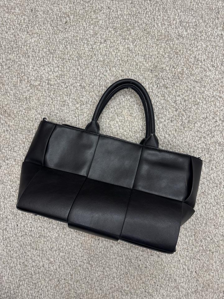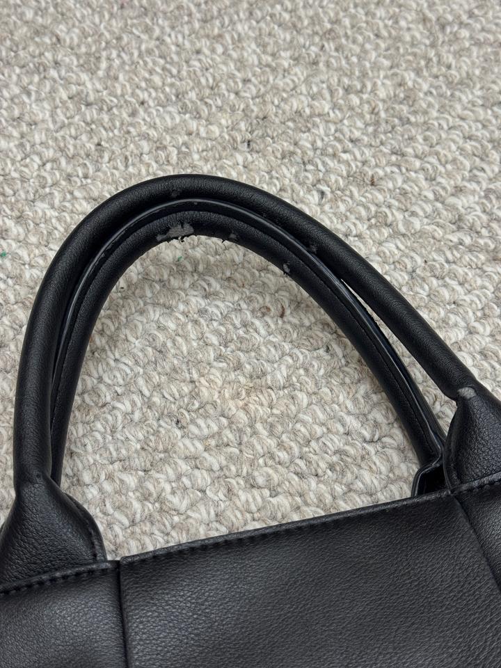 Сумка шоппер, 100% кожа. Внутри два отсека, есть кармашки. Закрывается на замке. Есть длинный ремешок. Кожа у ручек тонкая и есть потертости. Артикул: 540886