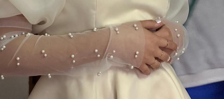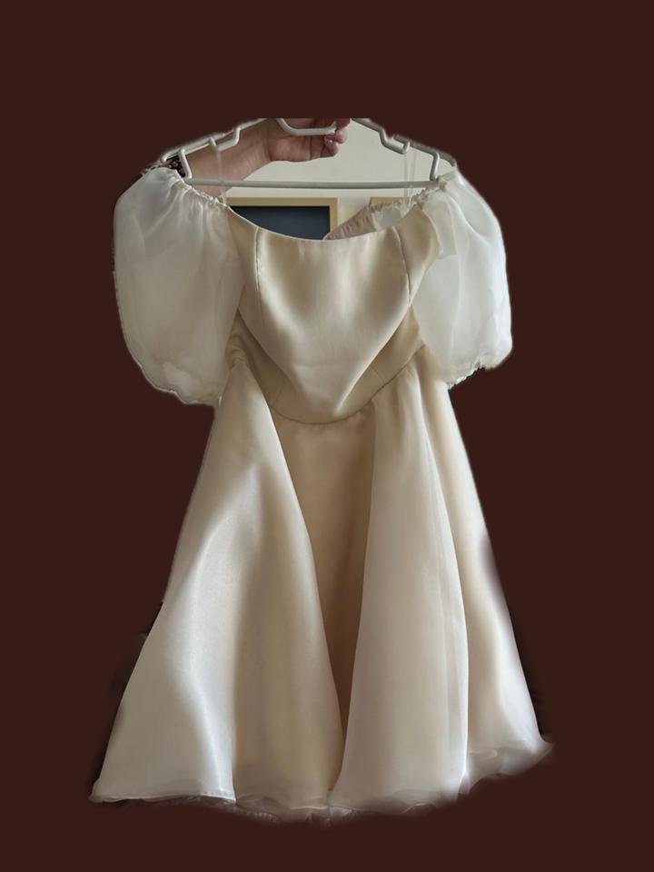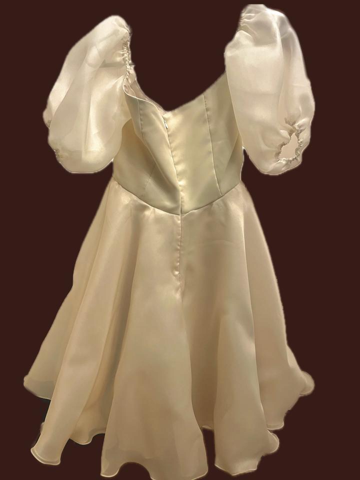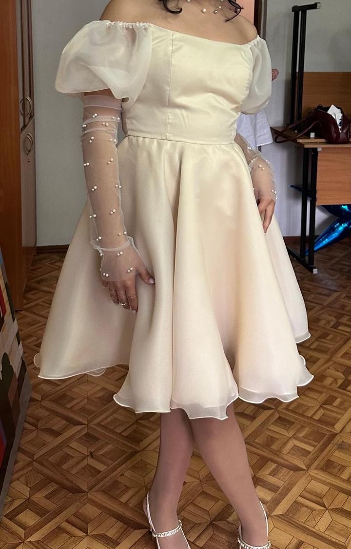 Молочное пышное платье из органзы, было сшито на заказ. Носила только один раз. Перчатки с жемчугом отдам в подарок. Артикул: 540909