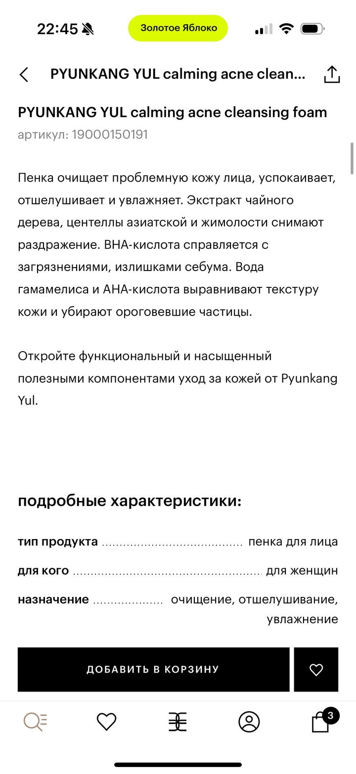 Пенка для проблемной кожи с кислотами. Покупала для себя в зя, к сожалению не подошла моему типу кожи. Возможно вы пользуетесь или хотели бы попробовать, отдаю за символическую цену. Пенкой воспользовалась всего 2 раза. Артикул: 540918