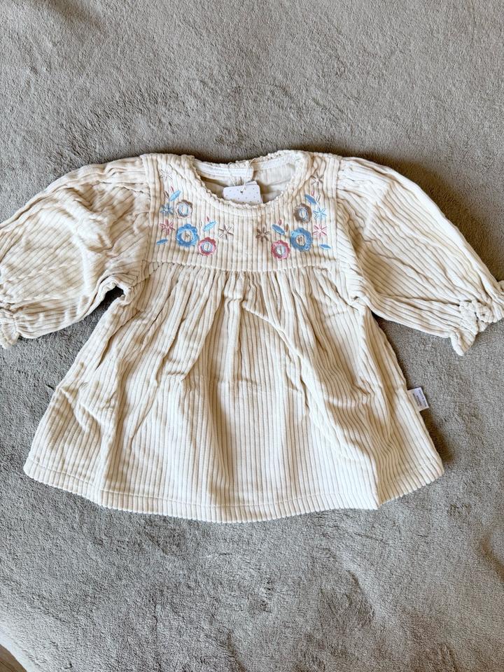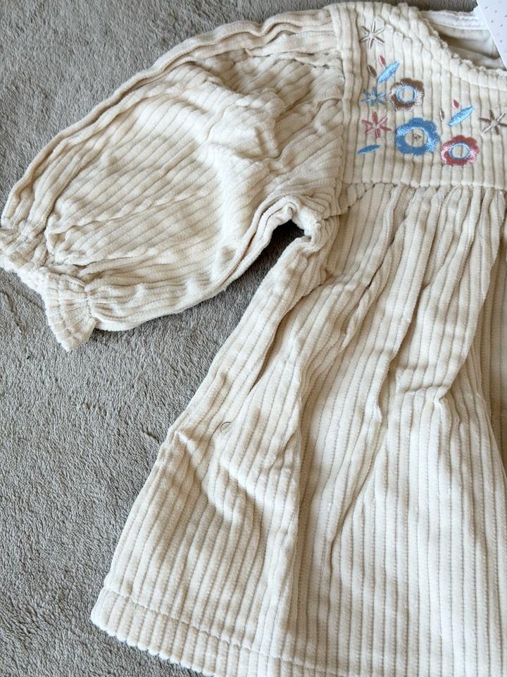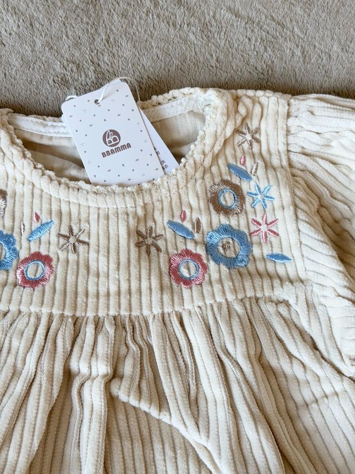 Как раз на весну. С однотонными колготками- прям шикарный образ будет. Вышивка очень красивая и качественная. Рост 74 на 9 месяцев. Артикул: 540945