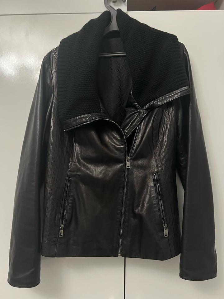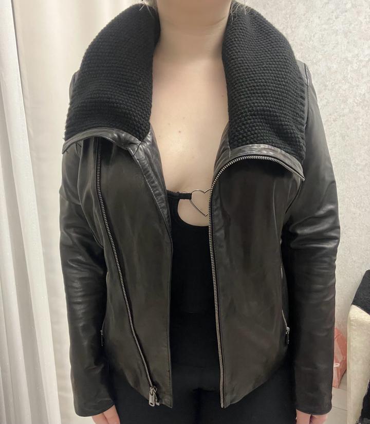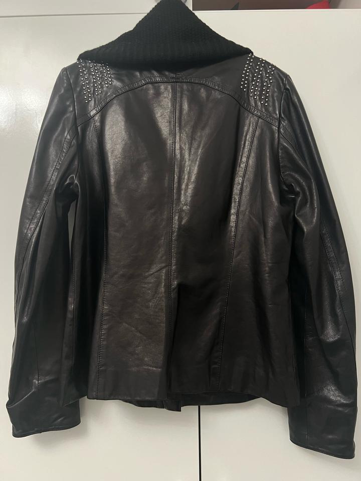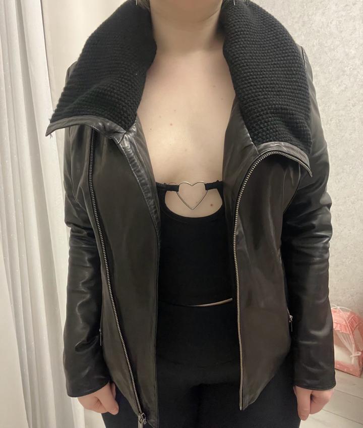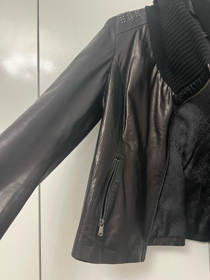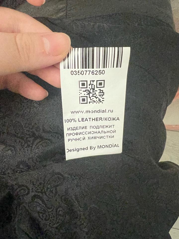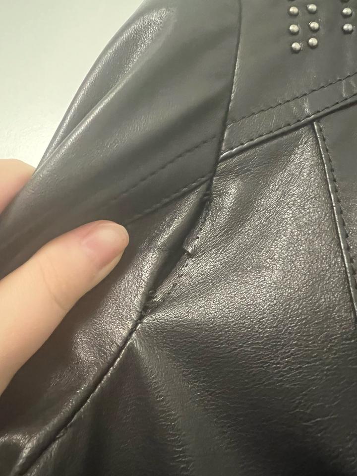 Продам кожаную куртку. Чистая кожа из магазина Mondial. Качество хорошее и нет царапин. Есть только один минус и это маленькая дырочка сзади. Фото дефекта добавила среди фото. Артикул: 540947